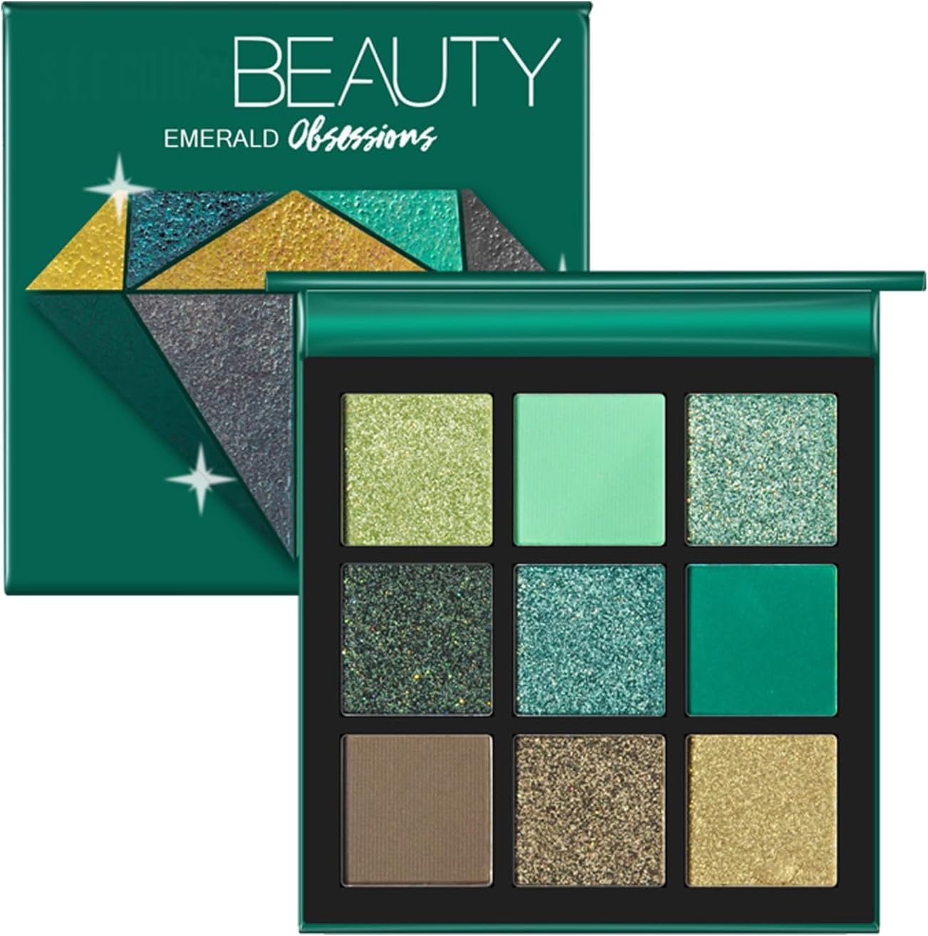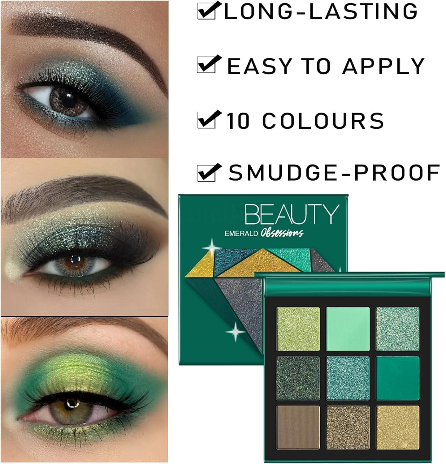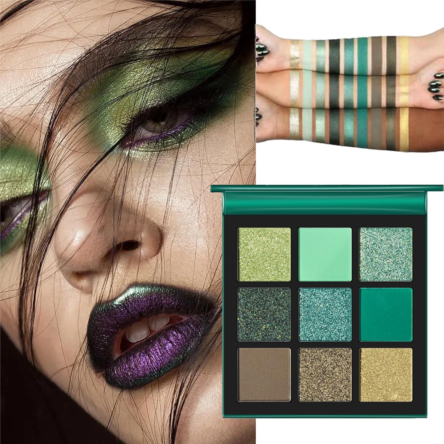 Eyeshadow Palette, Green 9 Colours Shimmer Eye Shadow Palette, Matte and Glitter Eyeshadow Make Up Palettes Waterproof Highly Pigmented Light Green Shiny Yellow