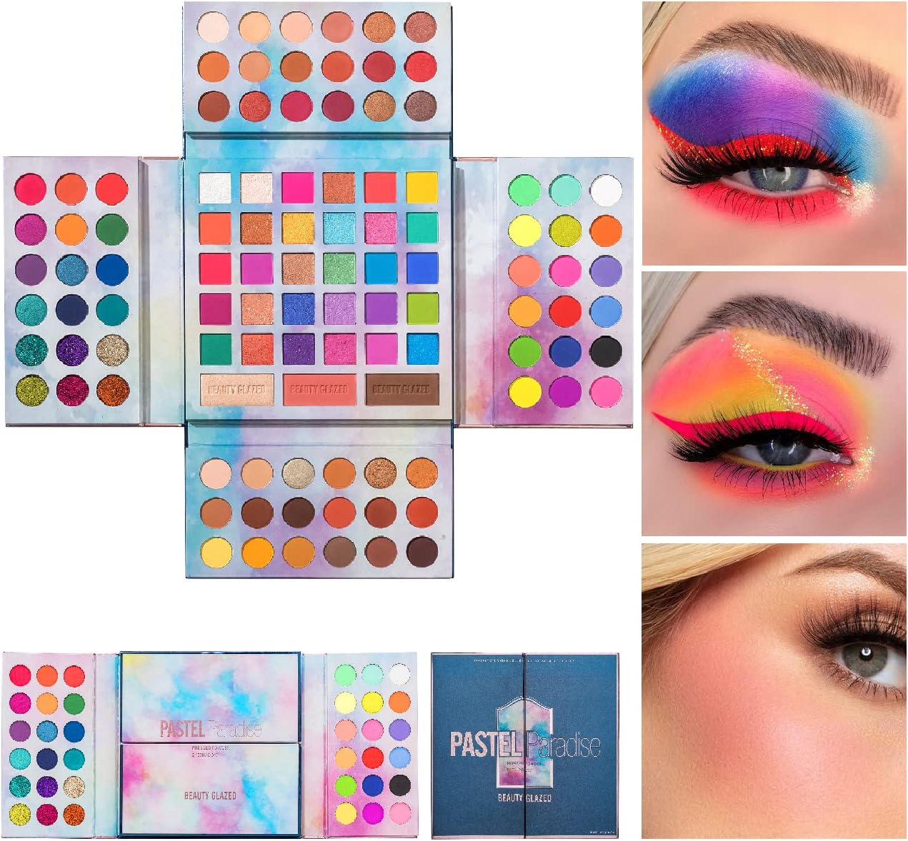 [GORGEOUS COVER AND TRAVLE SIZE]-The silver glitter lettering covers and small size make it perfect for travelling to take with. Just lift the sparkly sheet over the eye shadows.Supper match your glitter make up! The make up palette has compact light weight and small size which make it easy to travel with.