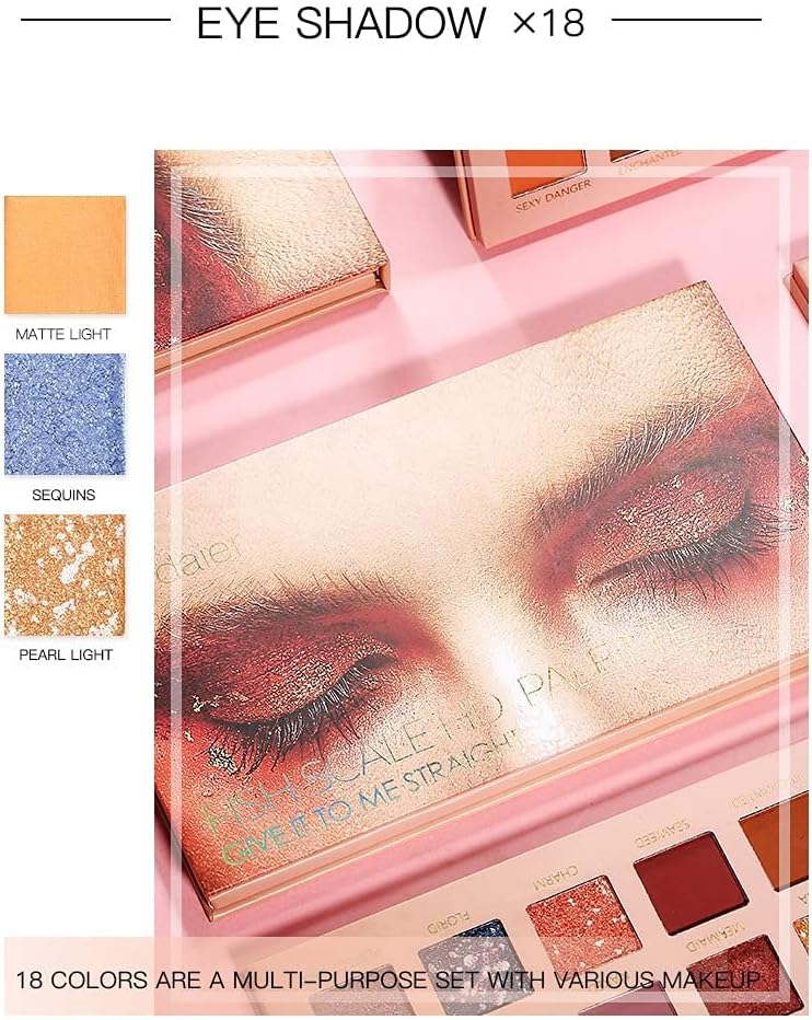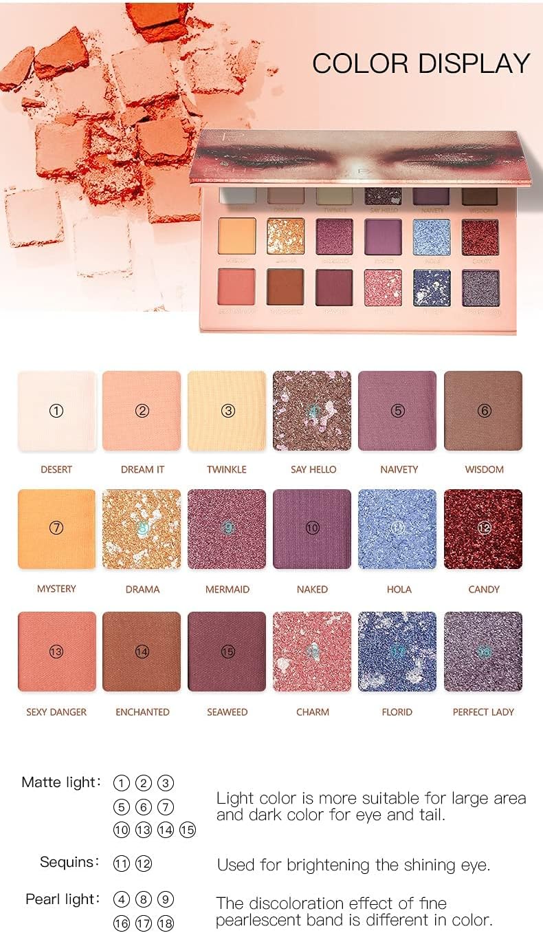 18 Pop Colors: This eyeshadow palette create endless looks with 18 pop colors, include of 10 Nude Matte Eyeshadows, 6 Pressed Pearls, 2 Sequins, that can be used together to customize your favorite looks.