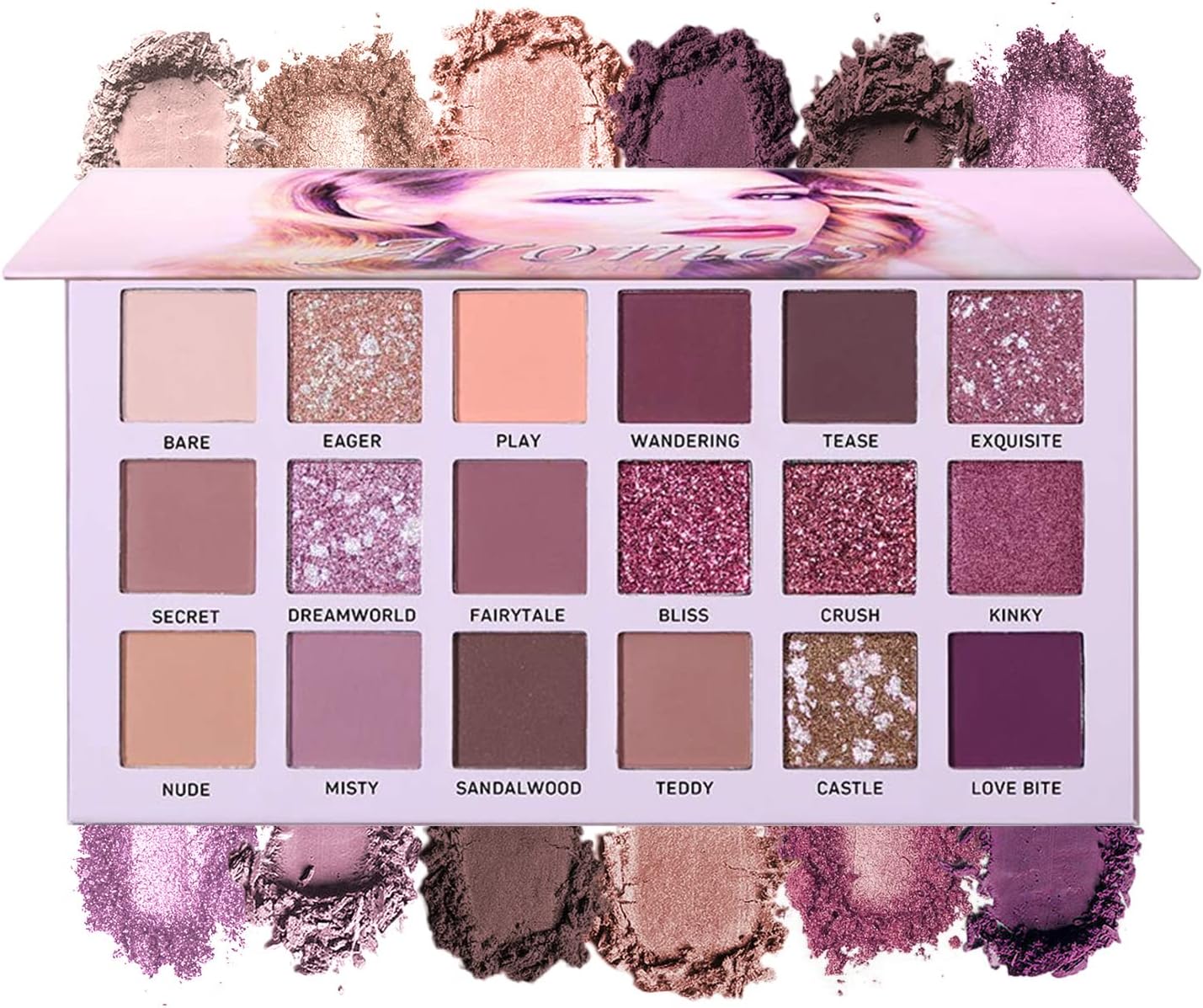 18 Rich & Trendy Colors Highly pigmented Matte & Shimmer Eyeshadow Palette for professionals to create sophisticated, edgy and passionate looks and to explore a variety of colors and make-up artwork.