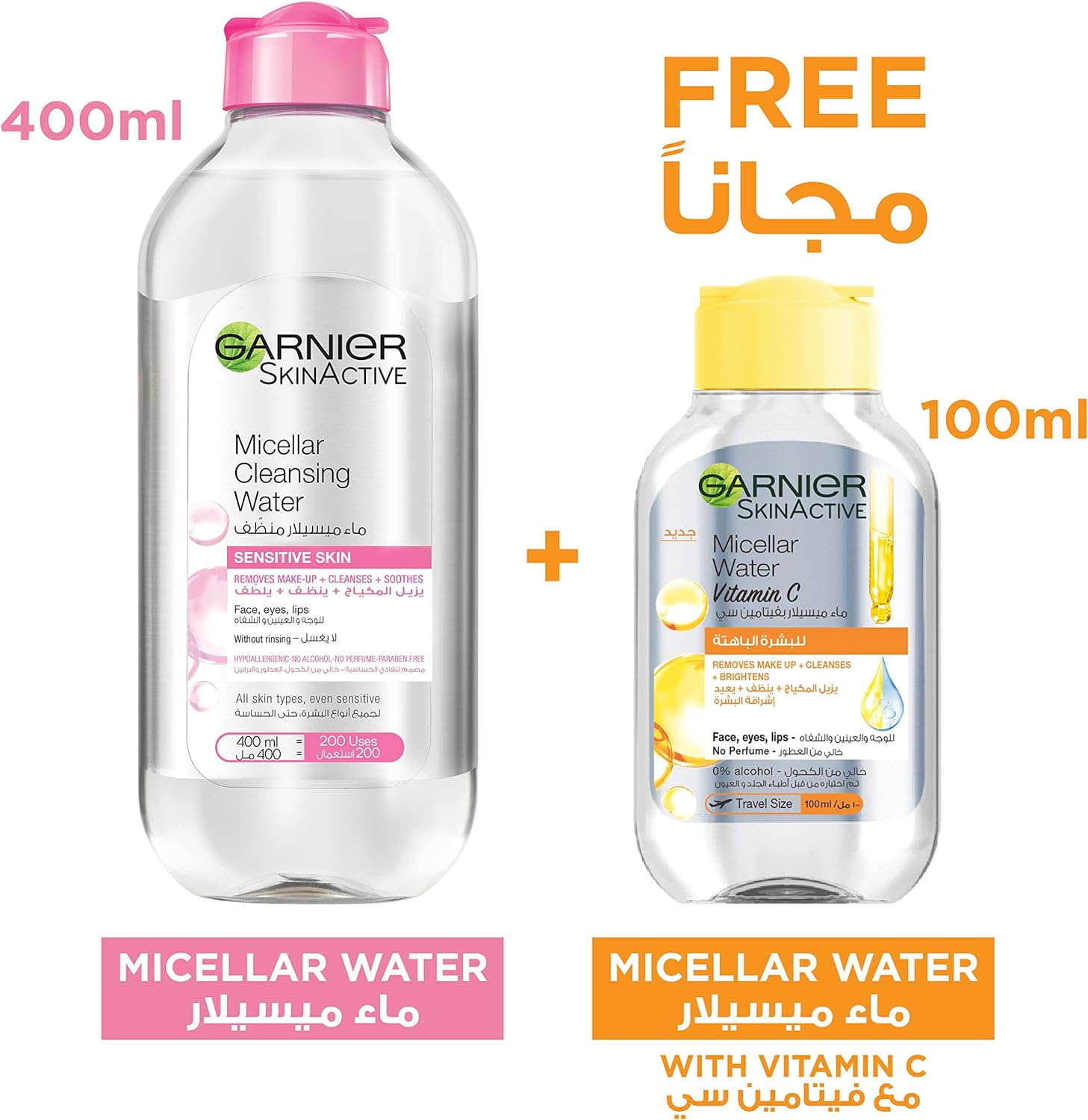Garnier Skinactive Micellar Cleansing Water Classic 400Ml + Micellar Water Bright With Vitamin C 100Ml