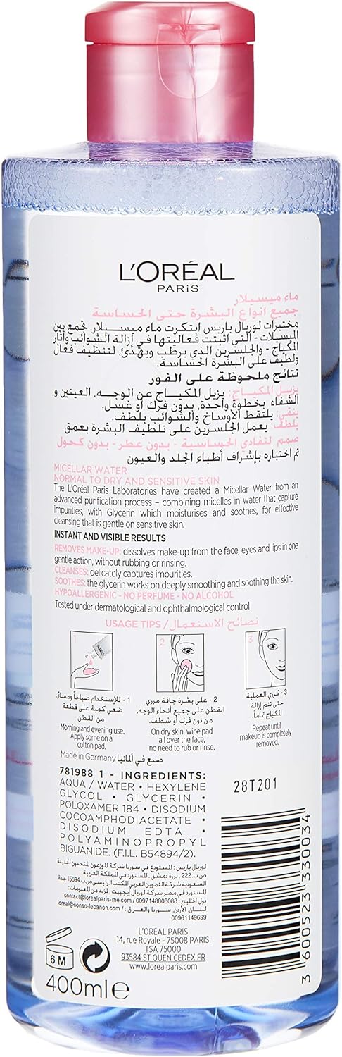 L’Oréal Paris Micellar Cleansing Water Normal To Dry Skin Cleanser & Makeup Remover, 400 ml