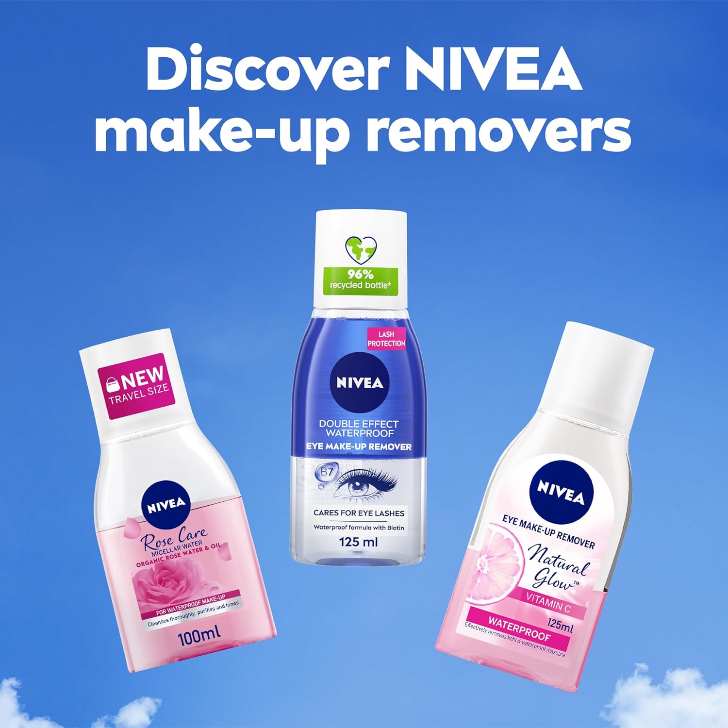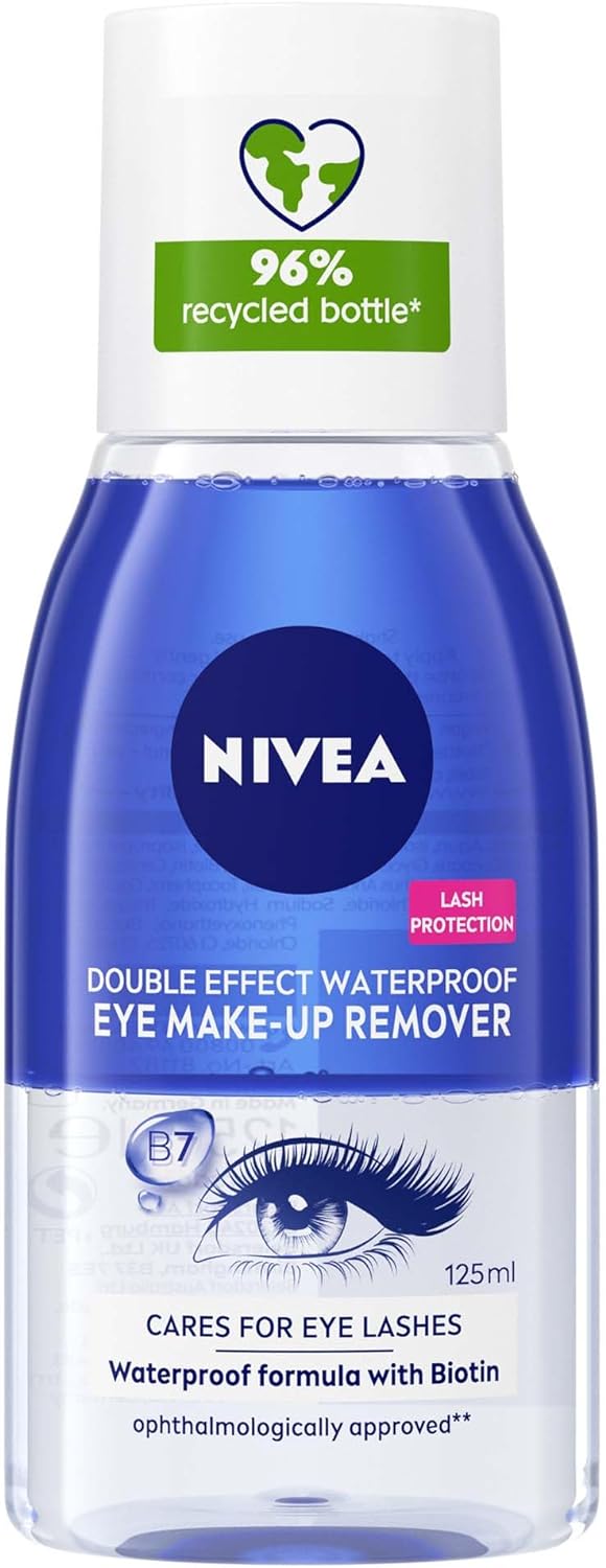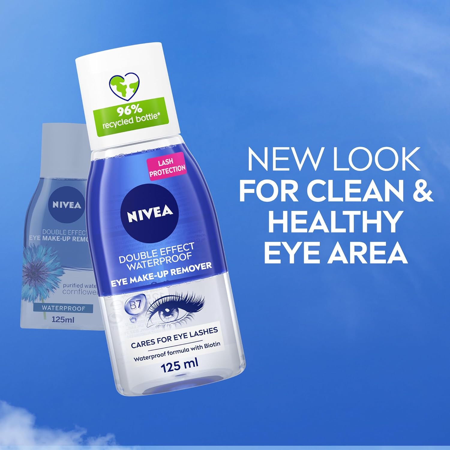 NIVEA Double Effect Eye Makeup Remover is a non-greasy, mild formula that gently and effectively removes eye make-up including extreme waterproof mascara without the need for rubbing or rinsing. Enriched with cornflower extract, NIVEA Double Effect Eye Makeup Remover thoroughly cleanses the delicate eye area without leaving any residue on your face, while protecting your sensitive eyelashes.NIVEA understands skin like no one else. That’s why we create products that cleanse, nourish and protect your skin, while giving it exactly what it needs – gentle yet effective care that keeps your skin smooth, supple and radiantly beautiful. No matter what you do, or where you live, we’re here to help you enjoy better skincare for life.NIVEA, a hundred years of skincare for life!