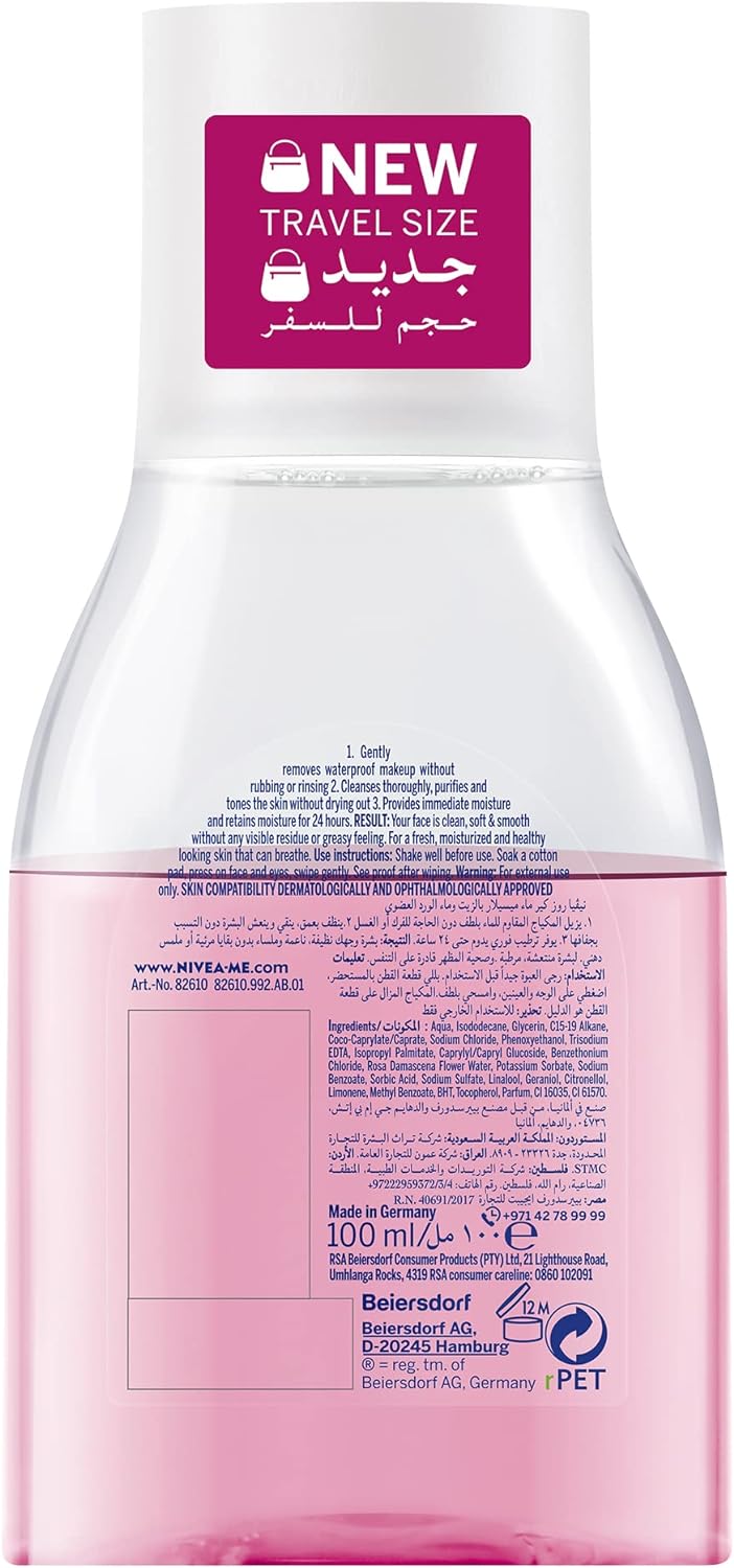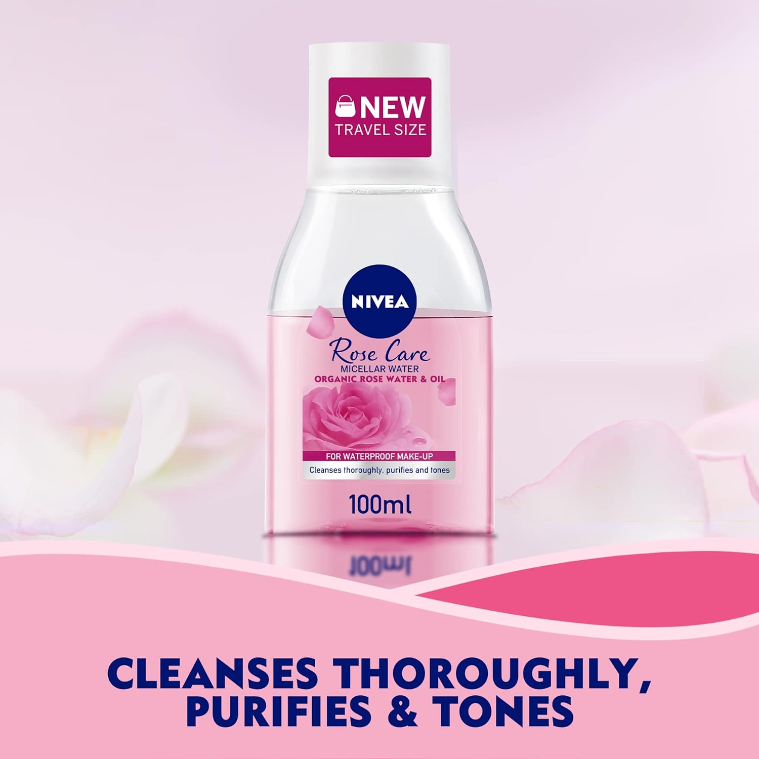 NIVEA Face Micellar Water Makeup Remover, Rose Care Biphase with Organic Rose Water, 100ml