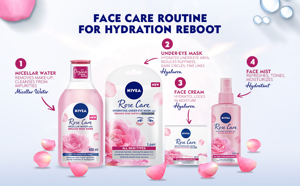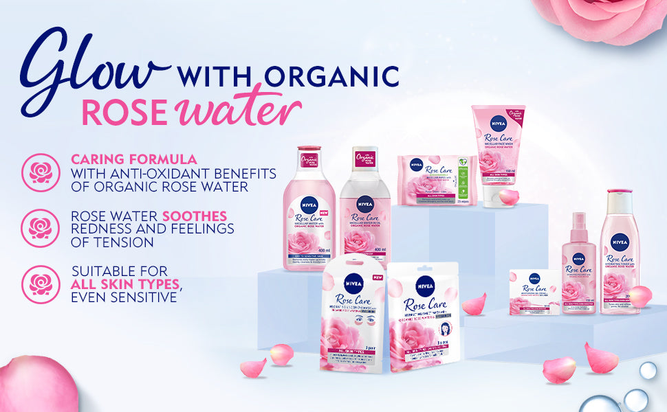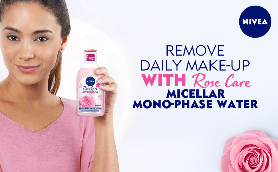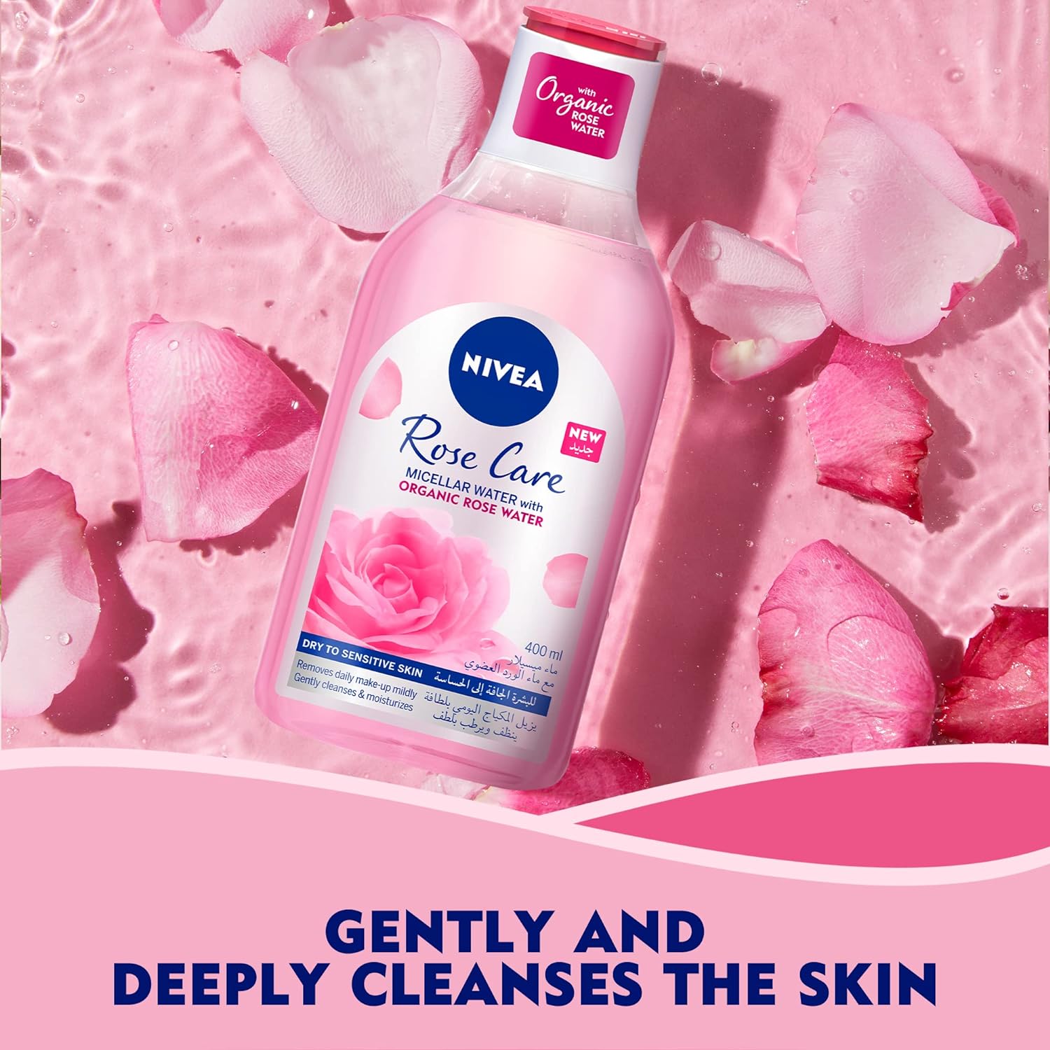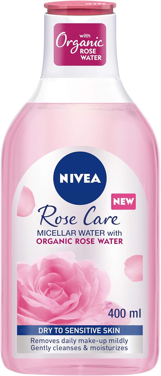 NIVEA Face Micellar Water Mono-phase Makeup Remover, Rose Care with Organic Rose Water, Dry & Sesitive Skin, 400ml
