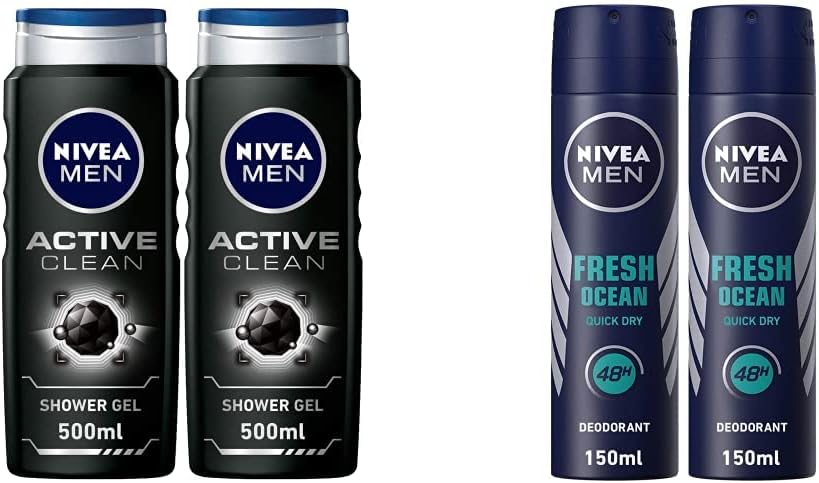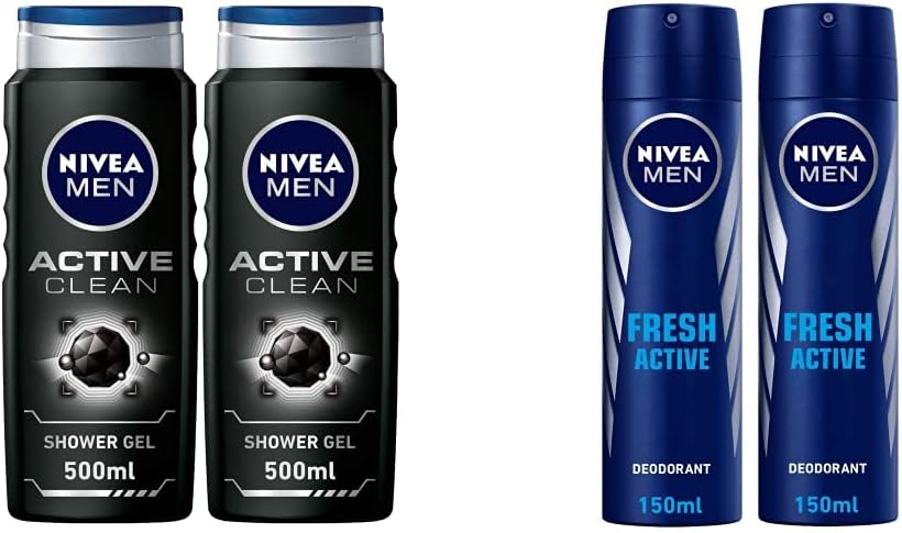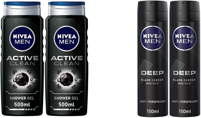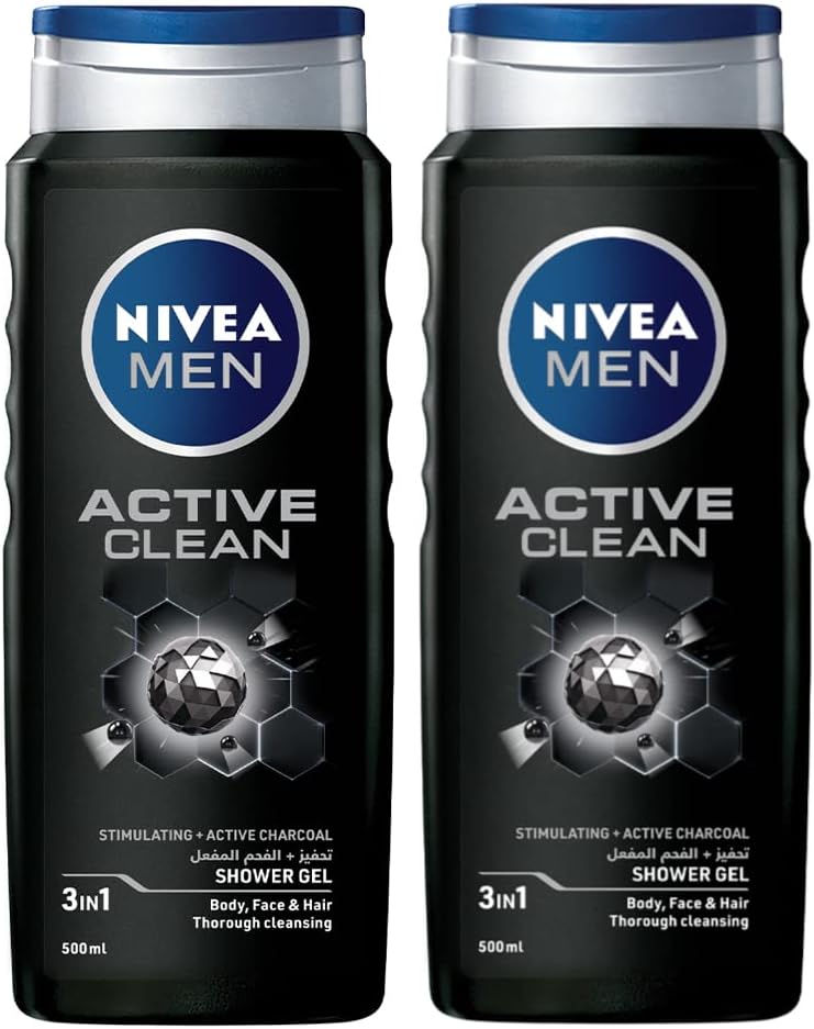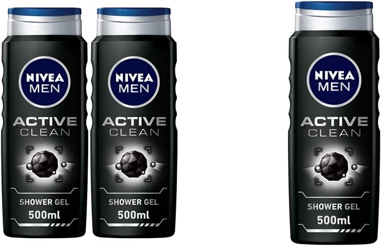 NIVEA MEN 3in1 Shower Gel Body Wash, Cleansing Active Clean Charcoal W – BUYO