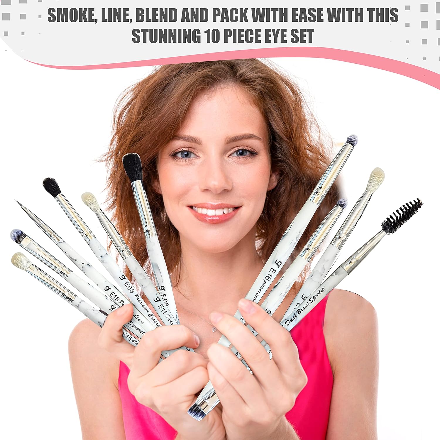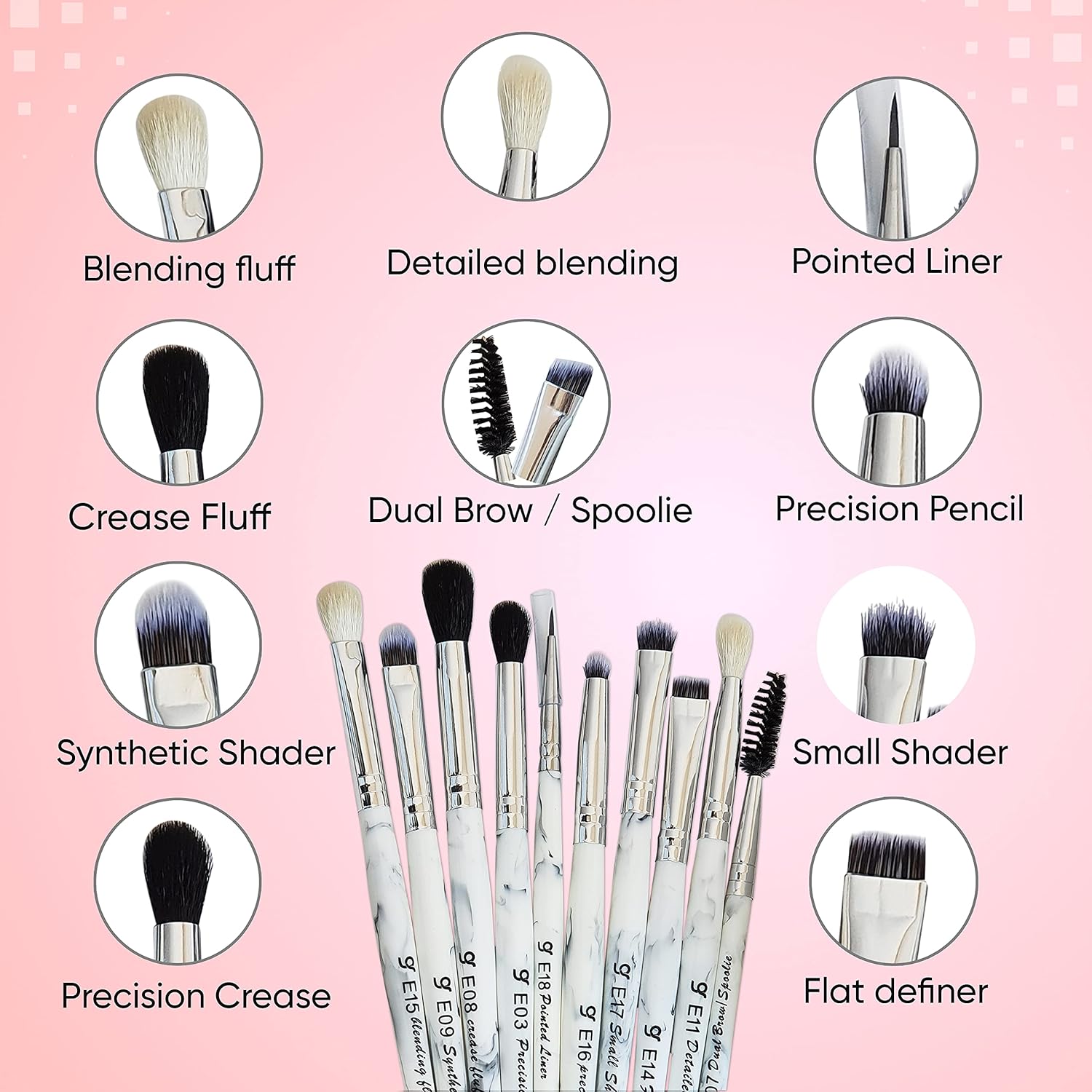 High Quality Materials: Professional Eye Make up Brushes Set with Marble handles and silver ferrules. Soft Bristles: Eye Make up brushes has natural and premium synthetic fiber materials, high density , fine texture to pick up the products well and blend to perfection.