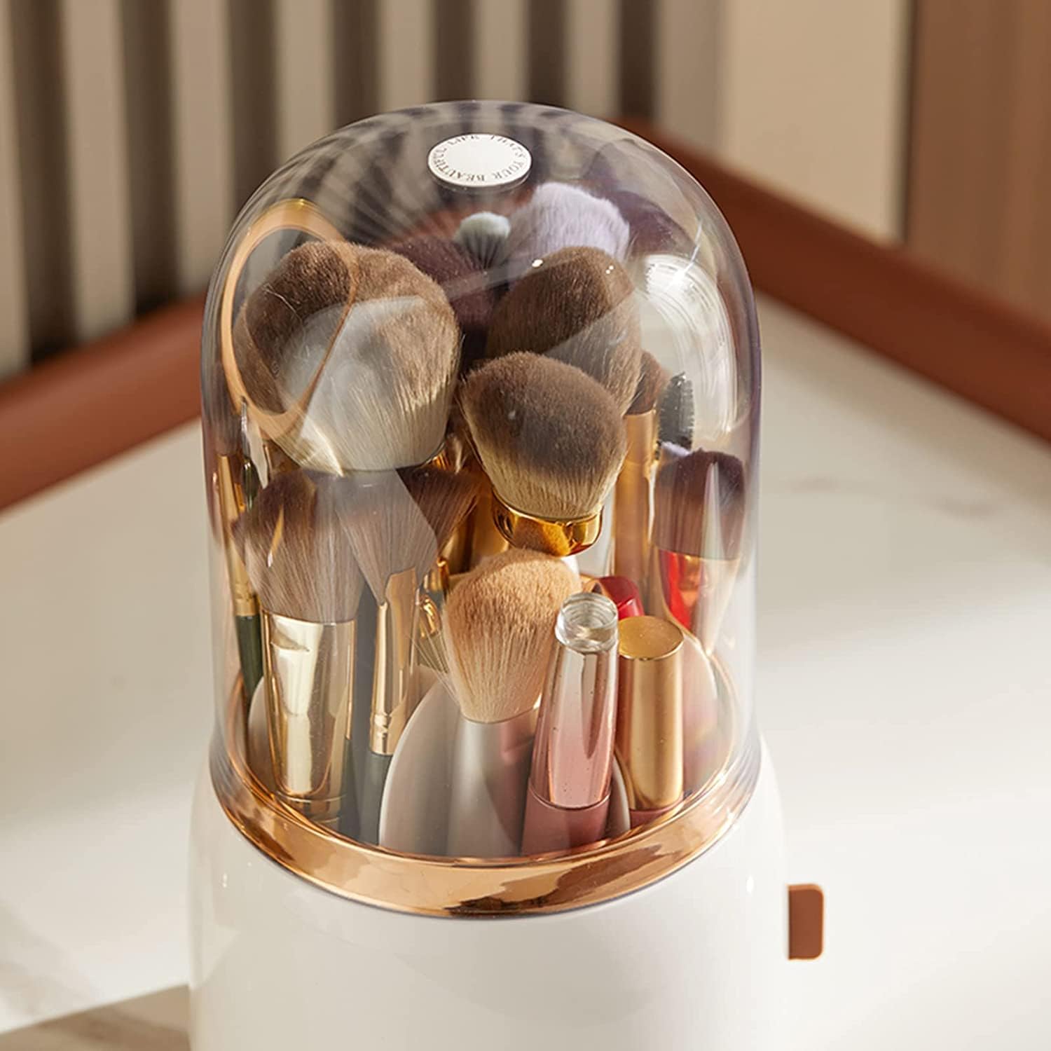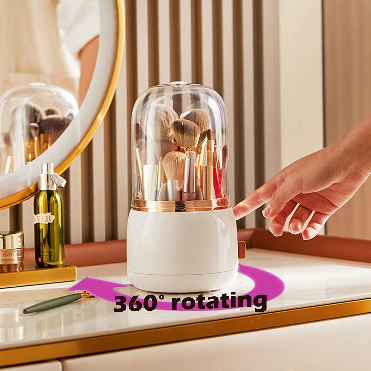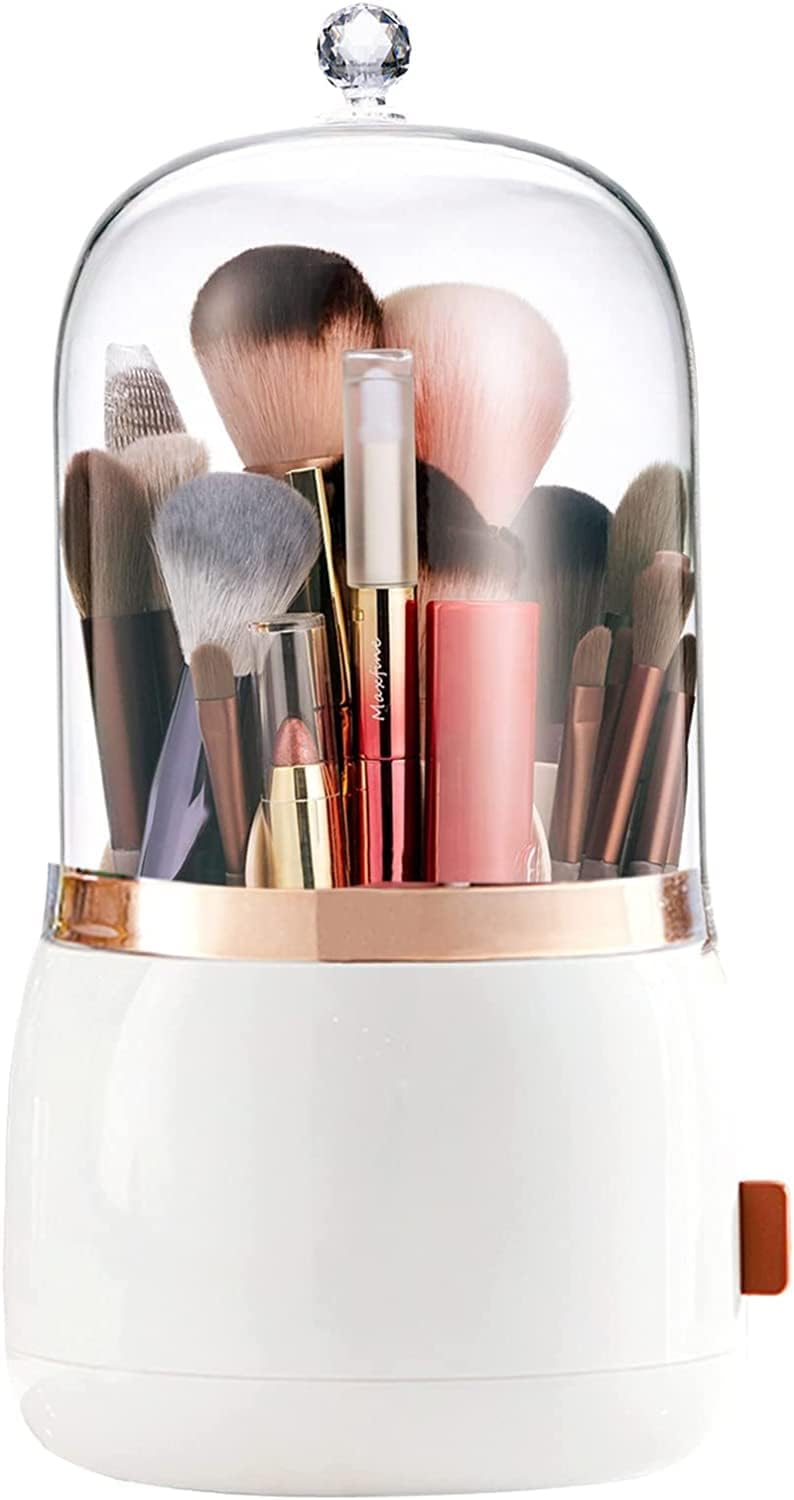 Makeup Brush Holder, Cosmetic Brushes Organizer with Lid 360 Rotating – BUYO