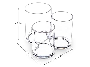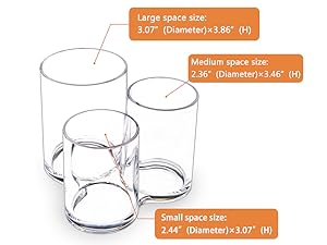 ❤SIZE: 5.78" (L) × 5.16"(W) × 4.25"(H),The maximum footprint is 6"; the minimum is 5 1/4". The tallest cylinder is 4 1/4", and about 3" inside across; medium is 3 3/4" tall, and 2 1/4" inside across; shortest is less than 3 1/2" tall, and also 2 1/4" across