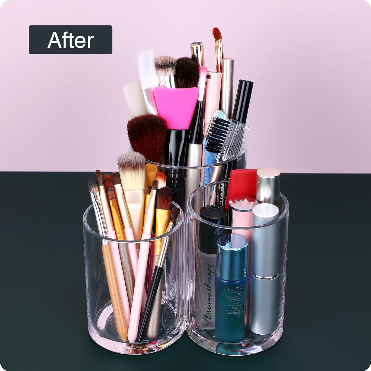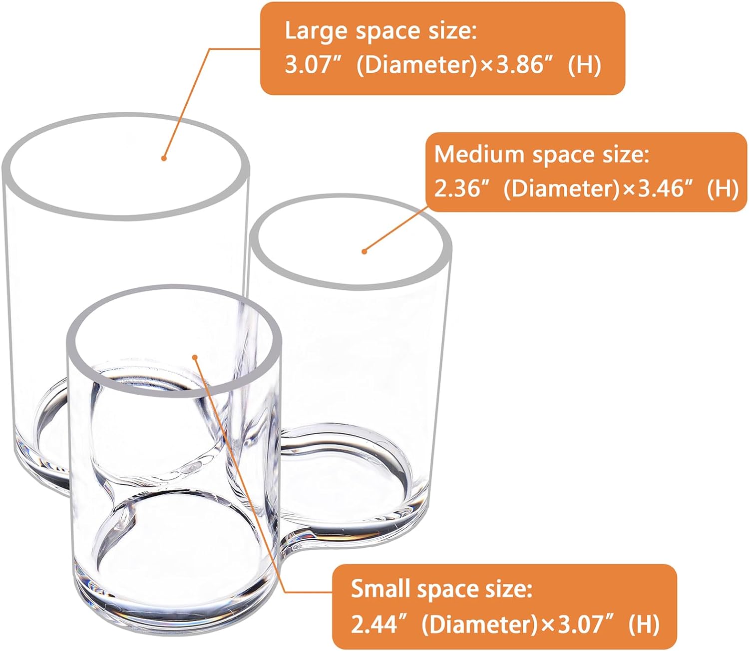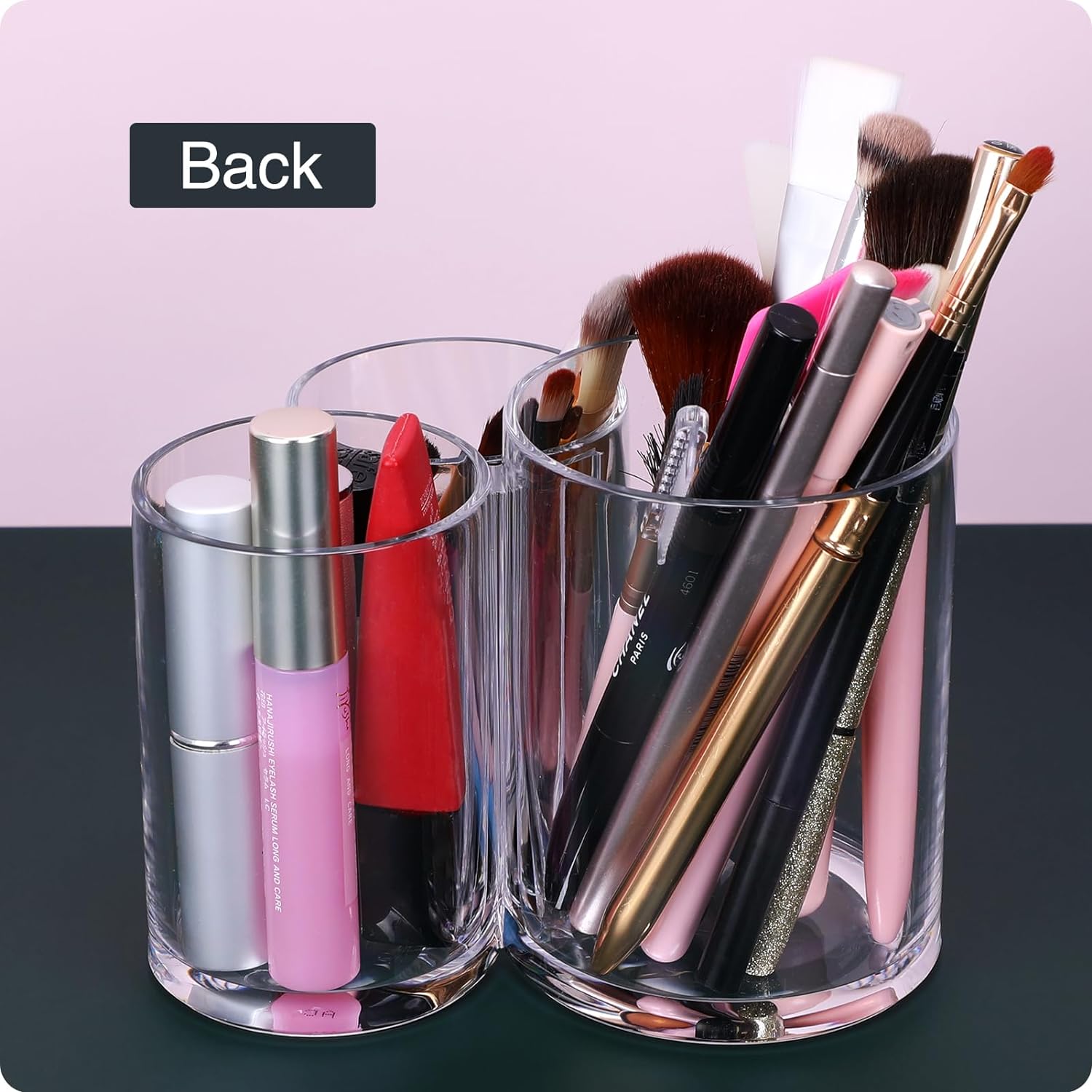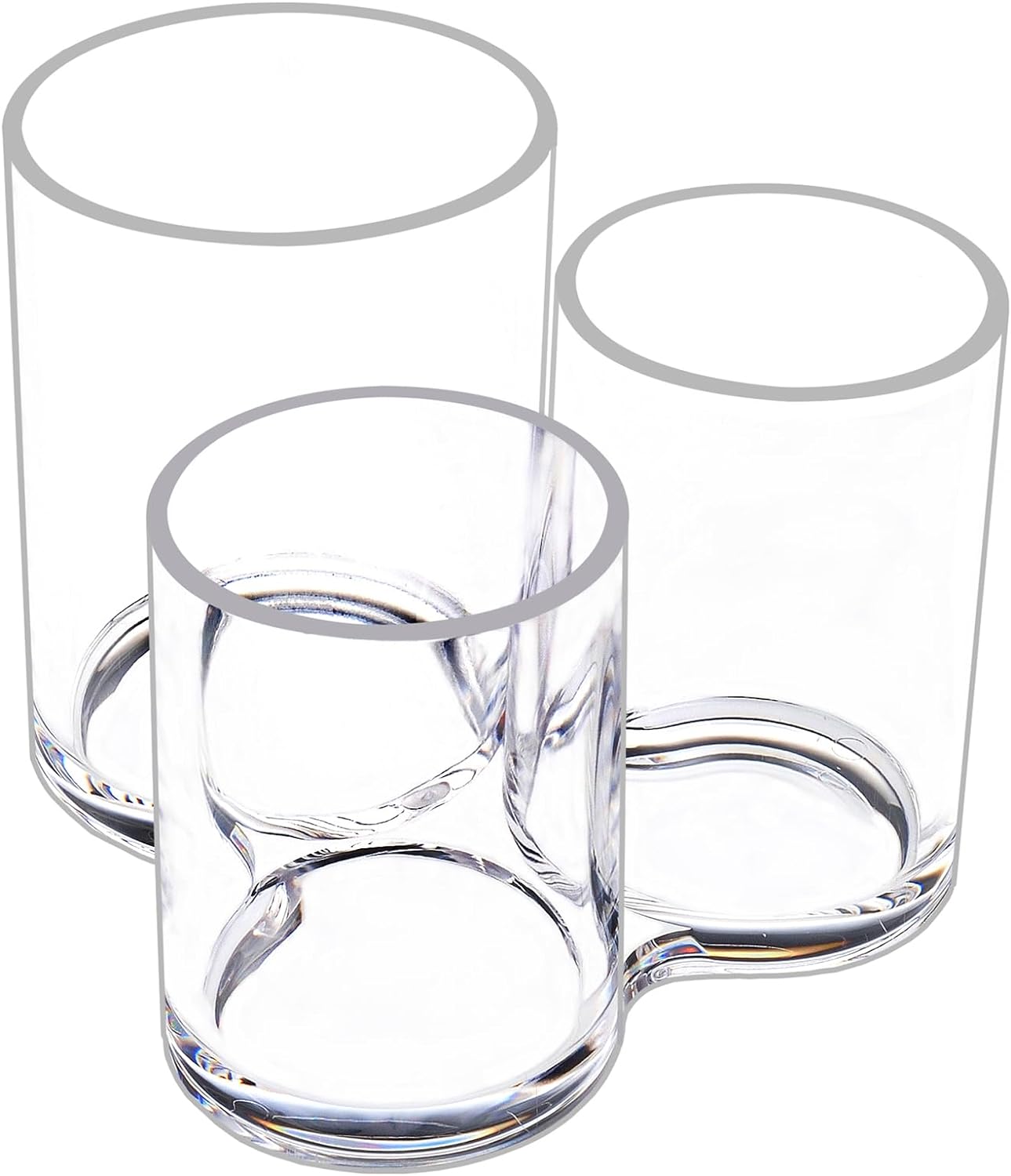 ❤DESIGN: This acrylic makeup brush holder is a set of 3 open-topped acrylic towers, all connected at the base. Each tower is of a different height, making them useful for holding similar but differently sized objects