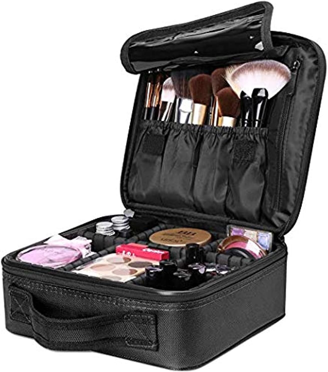 Travel Makeup Case, Cosmetic Organizer Bag Makeup Train Case With Compartment Makeup Bursh Set Storage Bag (Black)