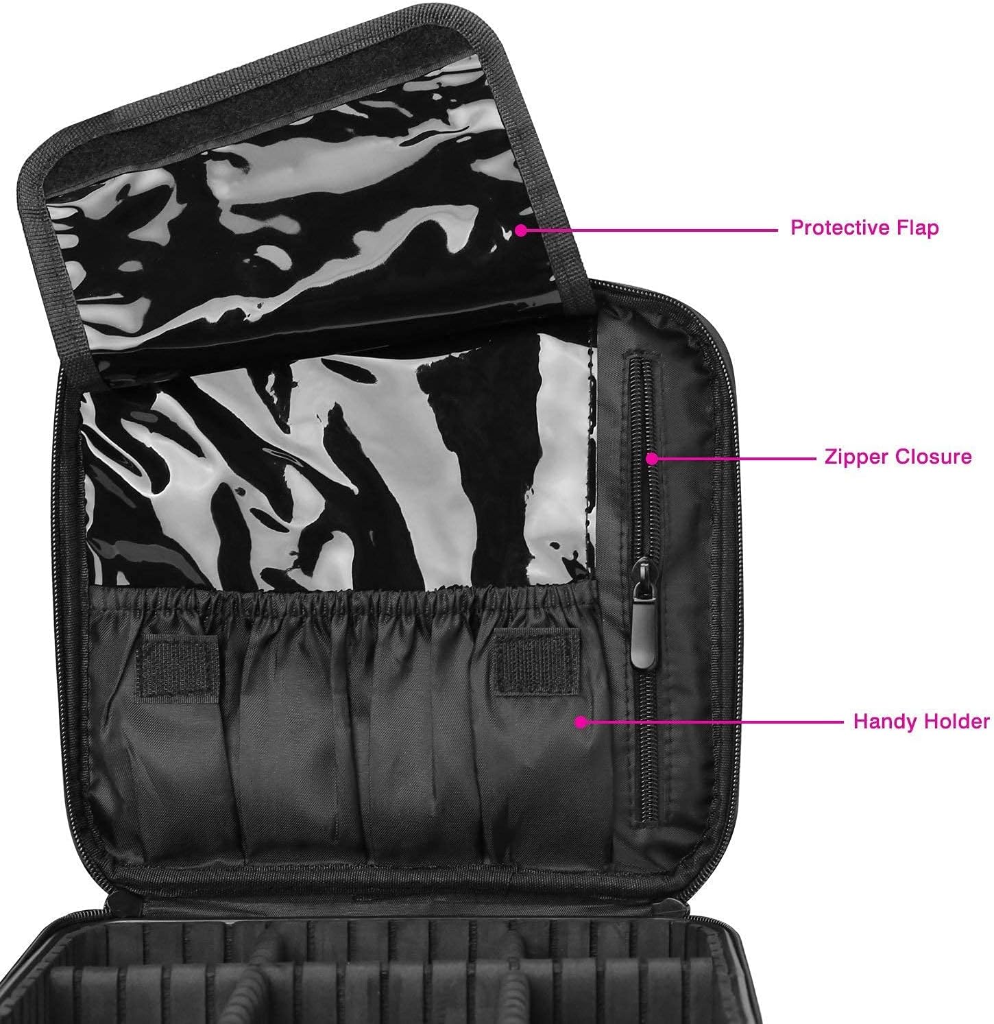 • Dual Zipper Closure Design: Designed with dual zippers and magic tape closure for easy access to your makeup items. Material: Nylon + EVA. Dimension: 10.23" x 9.44" x 3.54" (26cm x 24cm x 9cm).