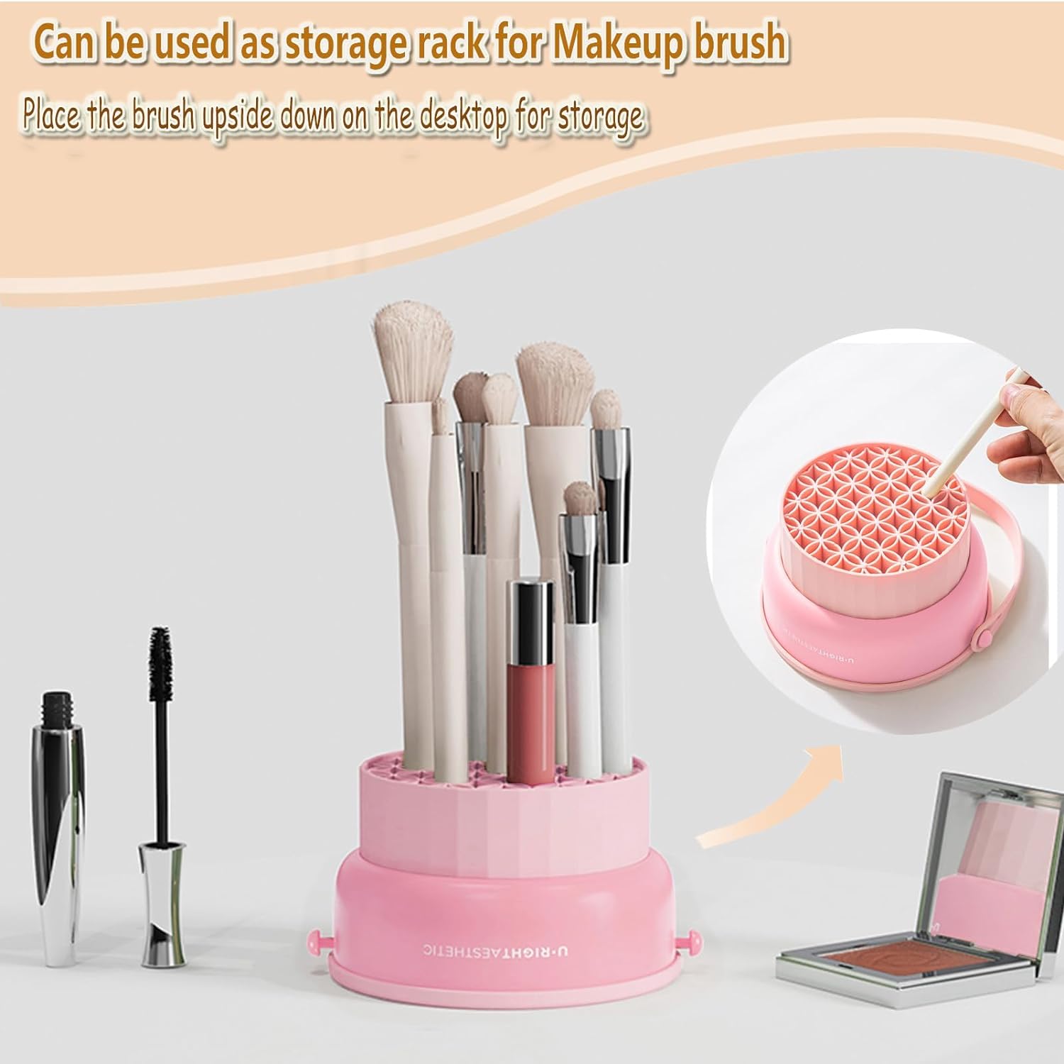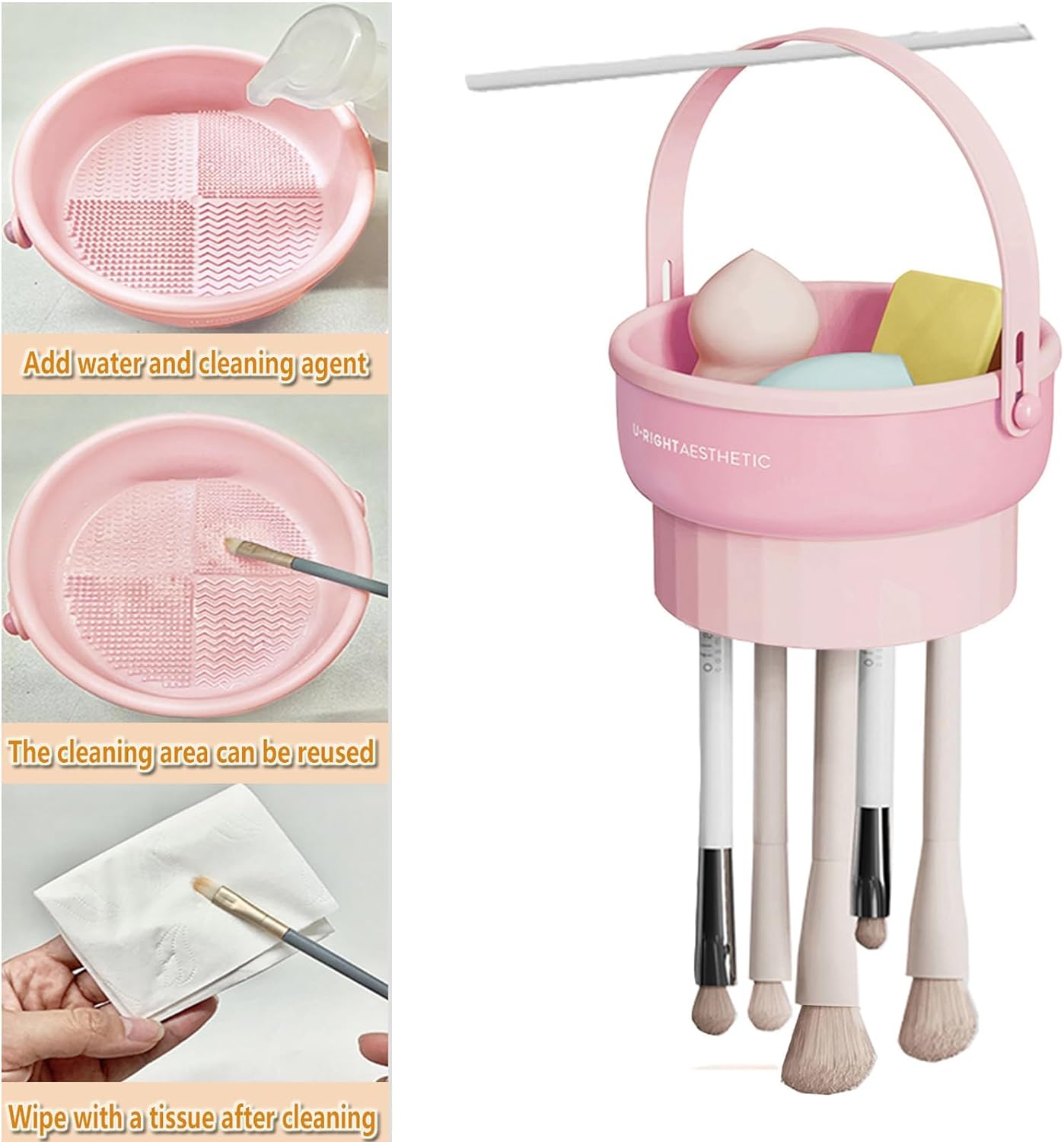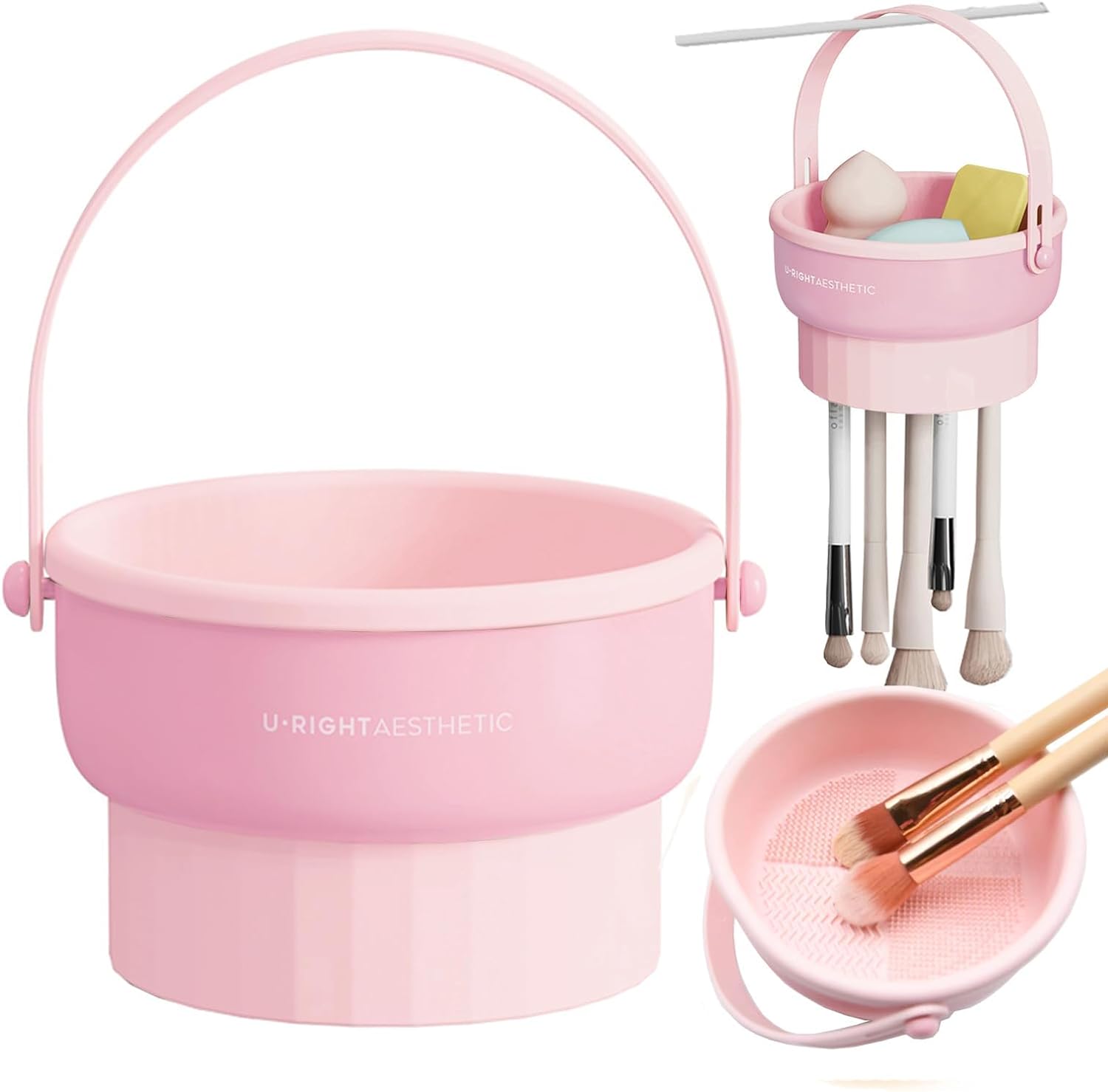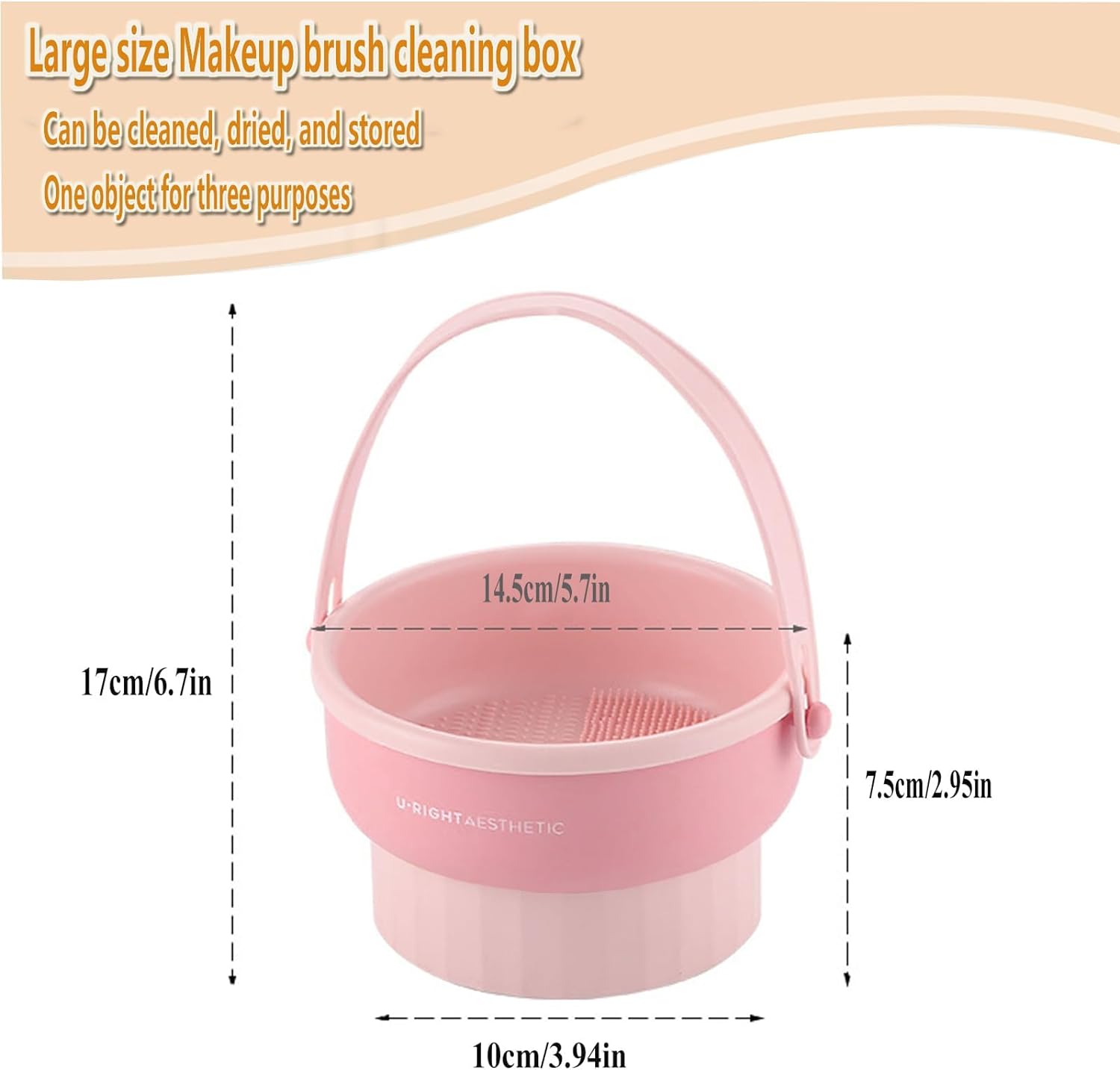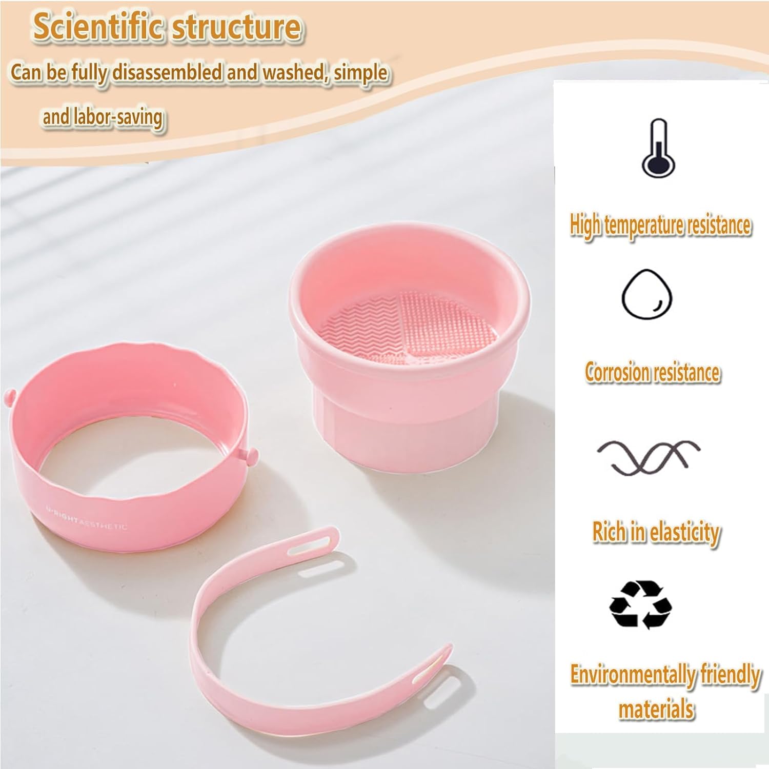 XVersion Makeup Brush Cleaner Mat 3 in 1 Silicone Makeup Brush Cleaner Bowl with Brush Drying Holder Cosmetic Brushes Cleaning Tool Organizer for Storage & Air Dry(Pink)