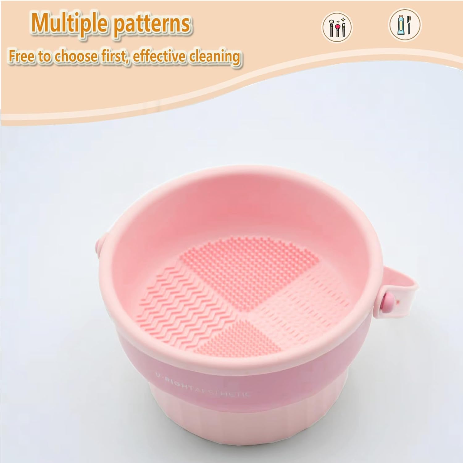 - PREMIUM SILICONE & HEALTHY PP MATERIAL: Crafted from top-tier silicone and eco-friendly PP material, our brush cleaning bowl is a paragon of durability and reusability. The soft yet robust construction ensures your makeup brushes remain unscathed during every wash. The sleek design not only looks cool but is also effortlessly wiped clean, adding convenience to your beauty routine.