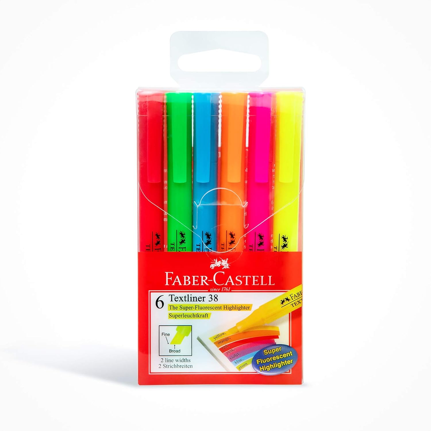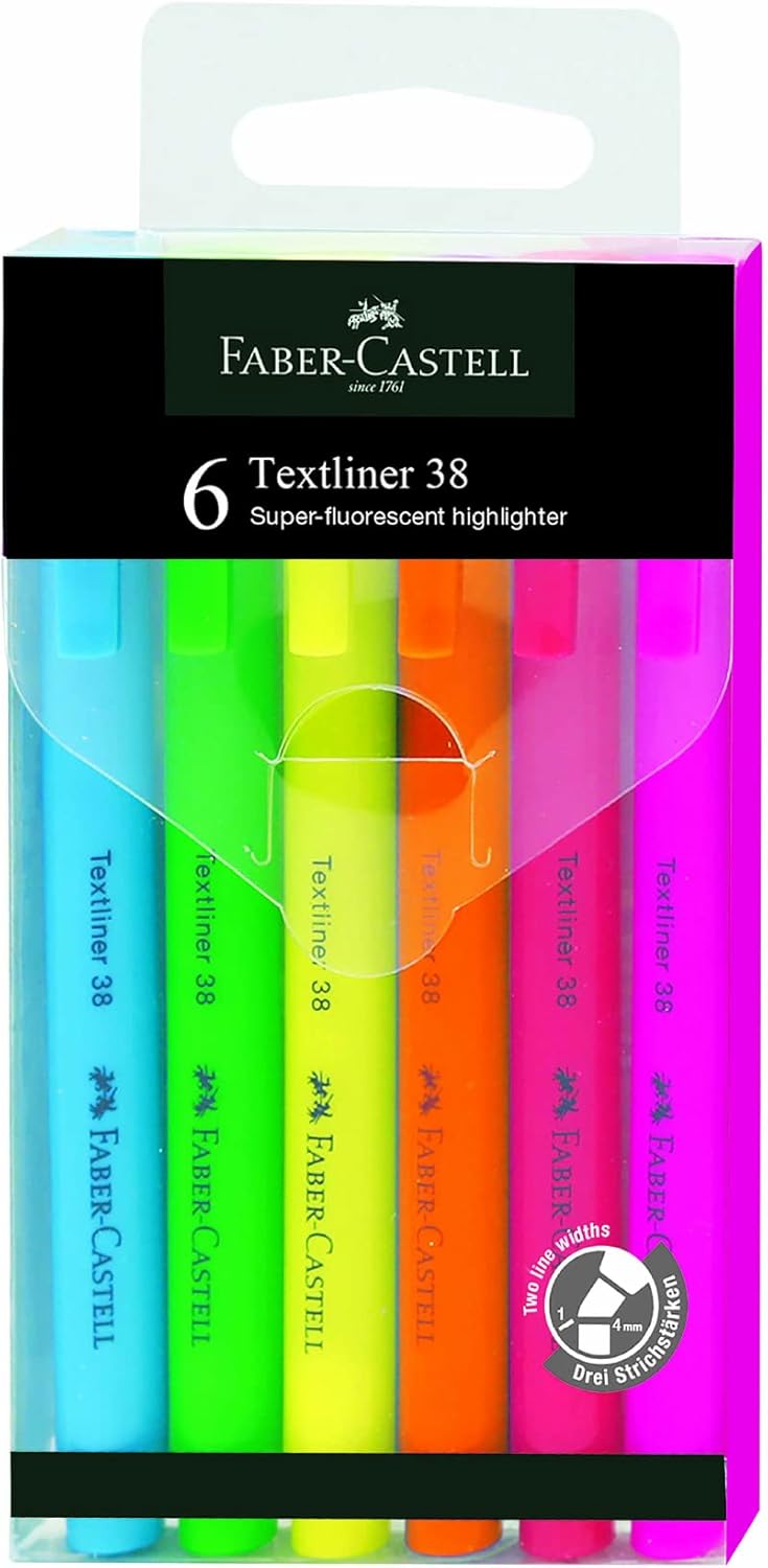Faber-Castell Super Fluorescent Slim Highlighter Wallet Of 6, 157706, Slim Fluorescent