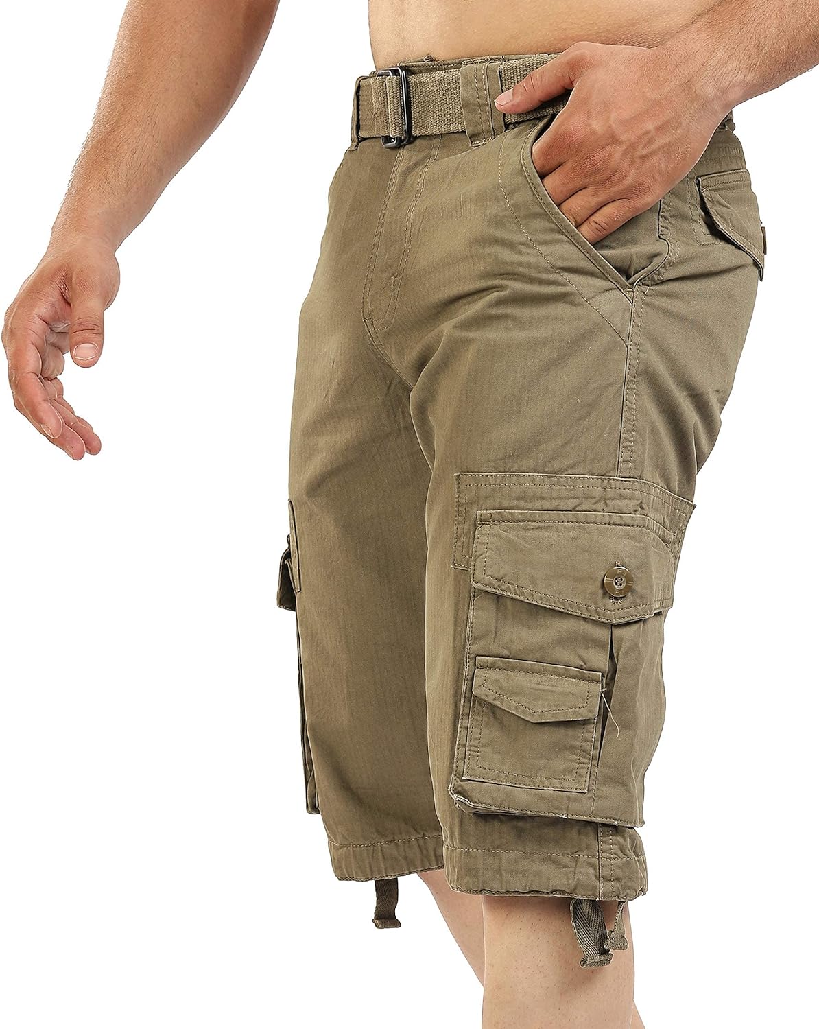 - MATERIAL: Cargo shorts are made of high quality 100% Cotton Sturdy Fabric. Comes with a Matching Belt with each mens Cargo Short.
