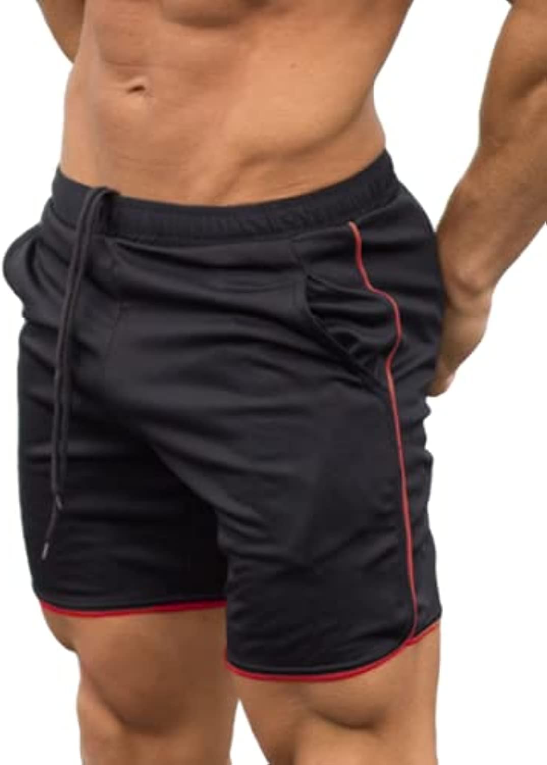 KAYIL Men Shorts Material: 90% Polyester/10% Spandex Please Note: Machine wash or hand wash in cold water --------------------- Design ------------------------------------- Deep Pockets on both sides. Moisture-wicking technology, Reinforced stitching for long lasting quality. Elastic waist with drawstring, adjust the fit to your liking. Lightweight and breathable Soft fabric, comfortable tailored fit. Suitable For: - Active Sports,Running, Jogging, Gym, Workout, Fitness, Walking, basketball and Outdoor activities.