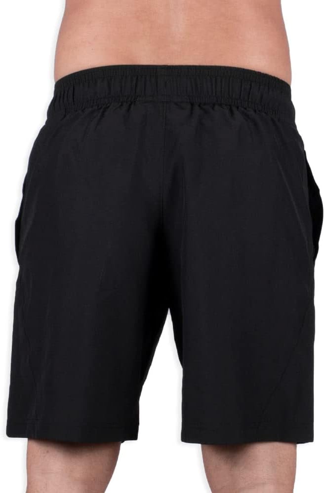 - Lightweight woven fabric delivers superior comfort & durability Encased elastic waistband with internal drawcord Open hand pockets Inseam: 8" No liner 100% Polyester Imported