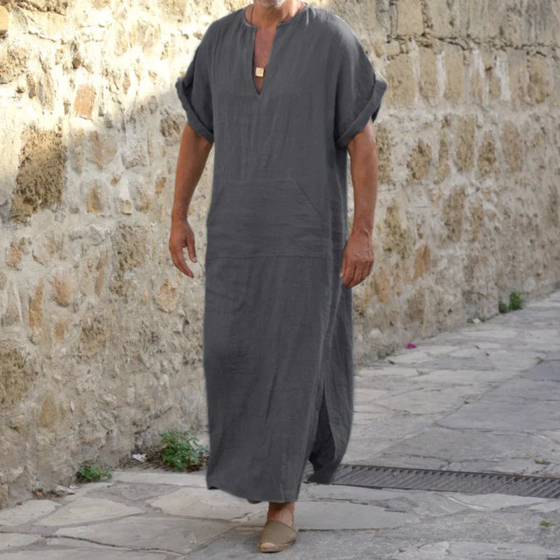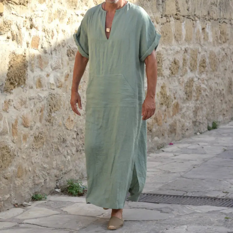 Jubba Thobe Islamic Arabic Kaftan Men Linen Cotton Solid Short Sleeve – BUYO