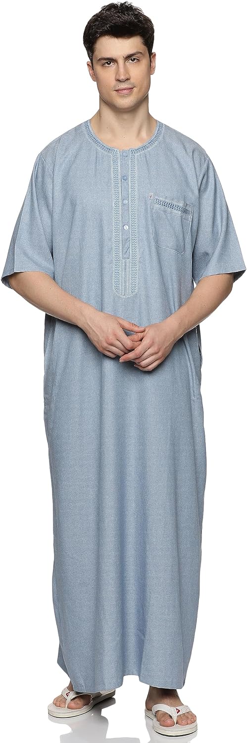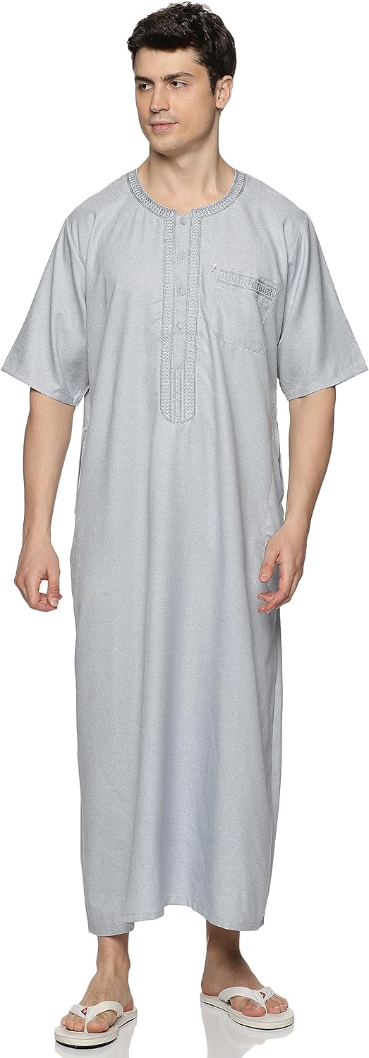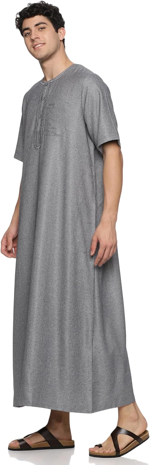 Men's Round Neck Short Sleeves Jalabiya for Men - Men's Short Sleeve Robe/Thobe
