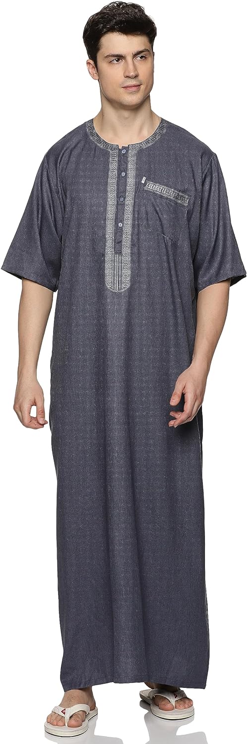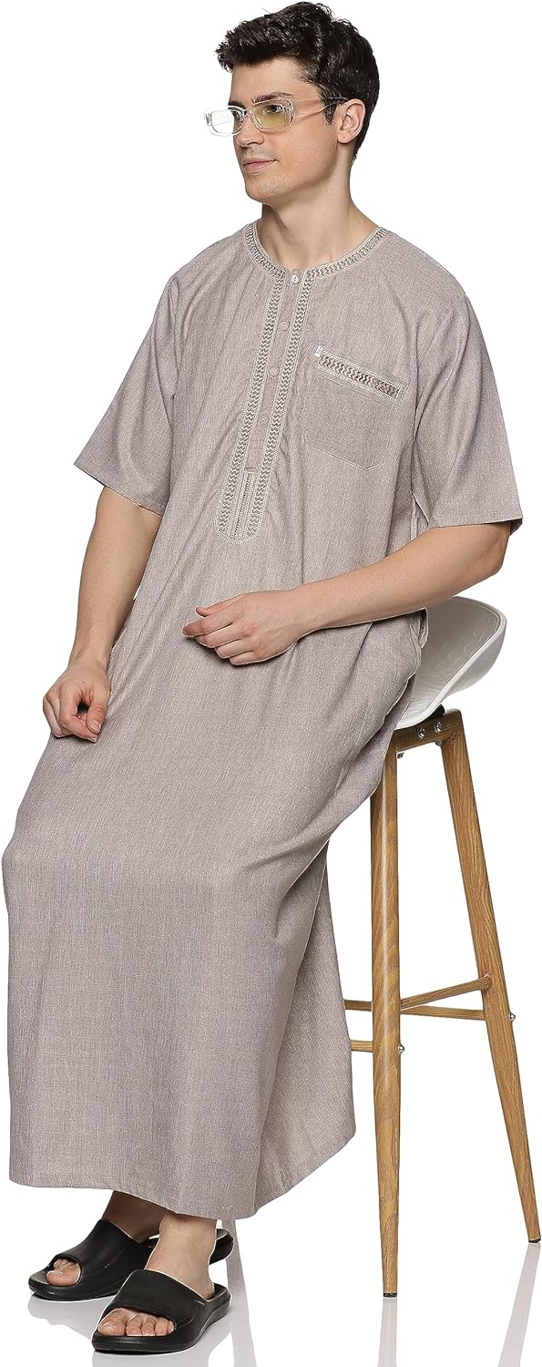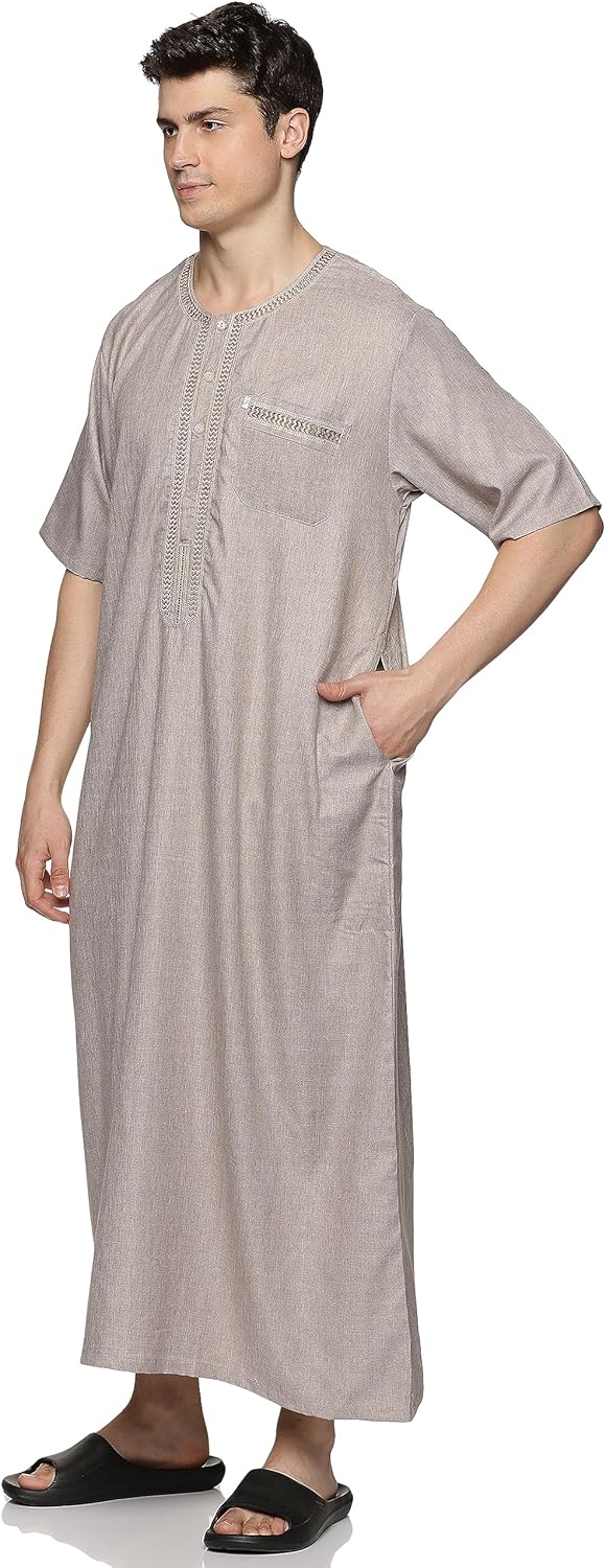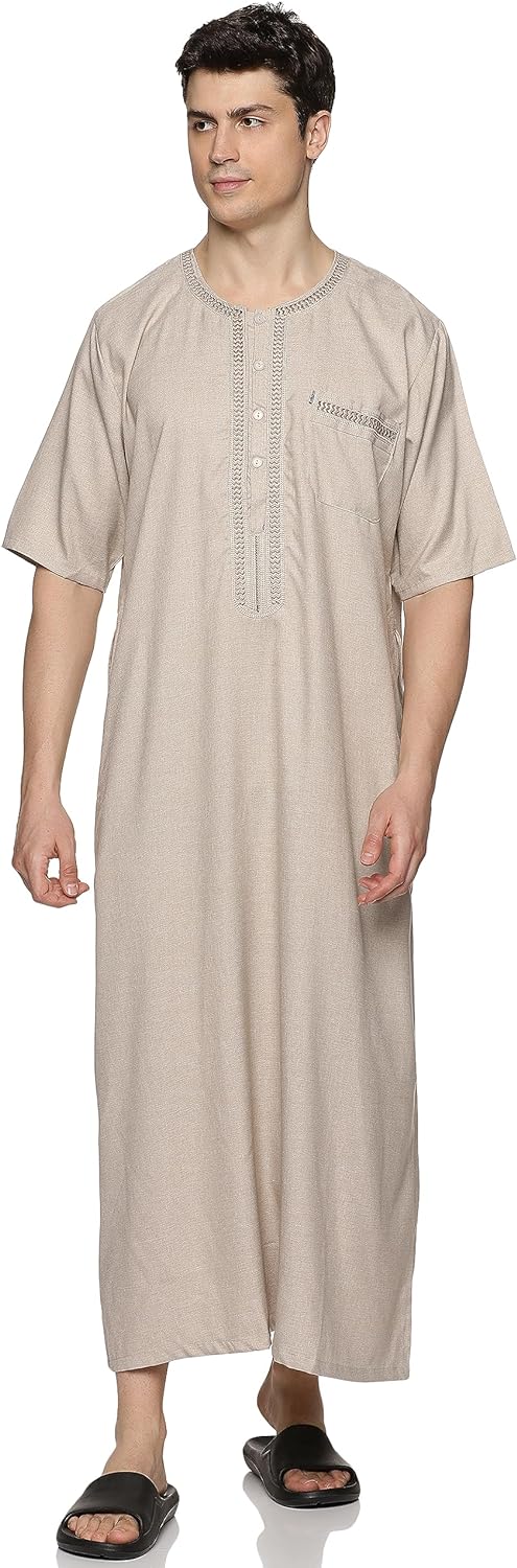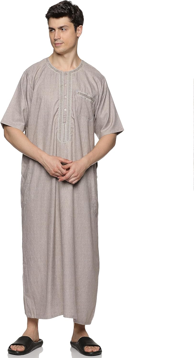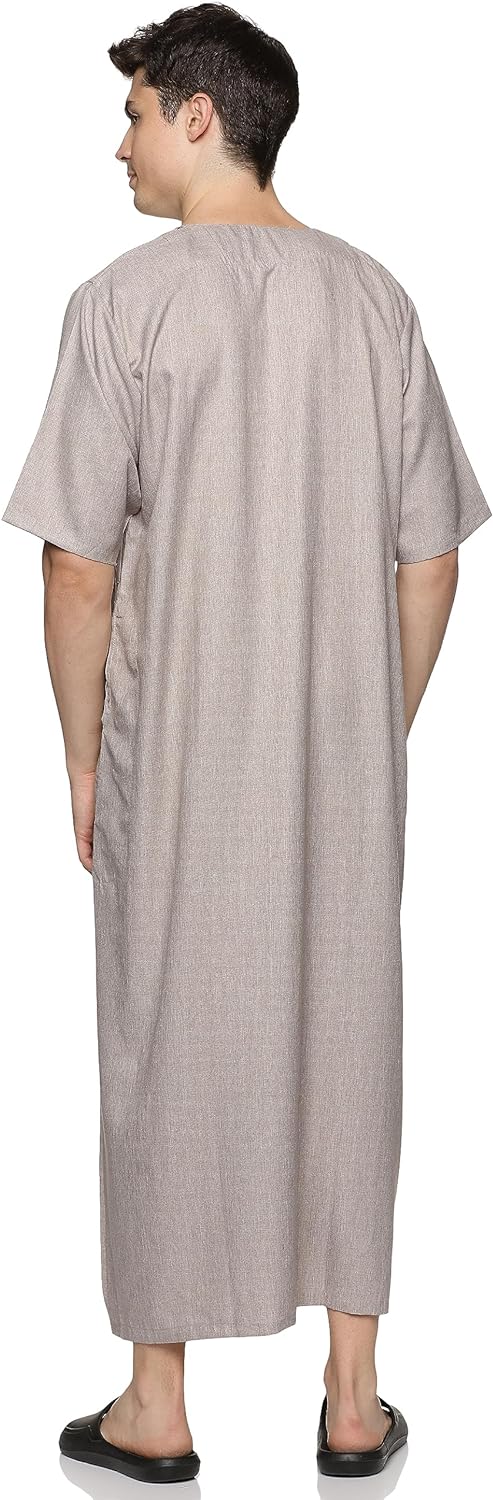 • STYLE: Our kandoora for men features round neck, short sleeve, ankle length, solid color, loose fit, and kaftan style. This thobe robe makes you feel less restrictive and comfy all day.