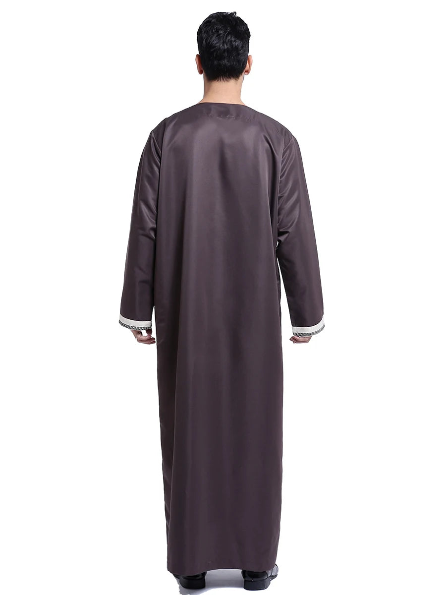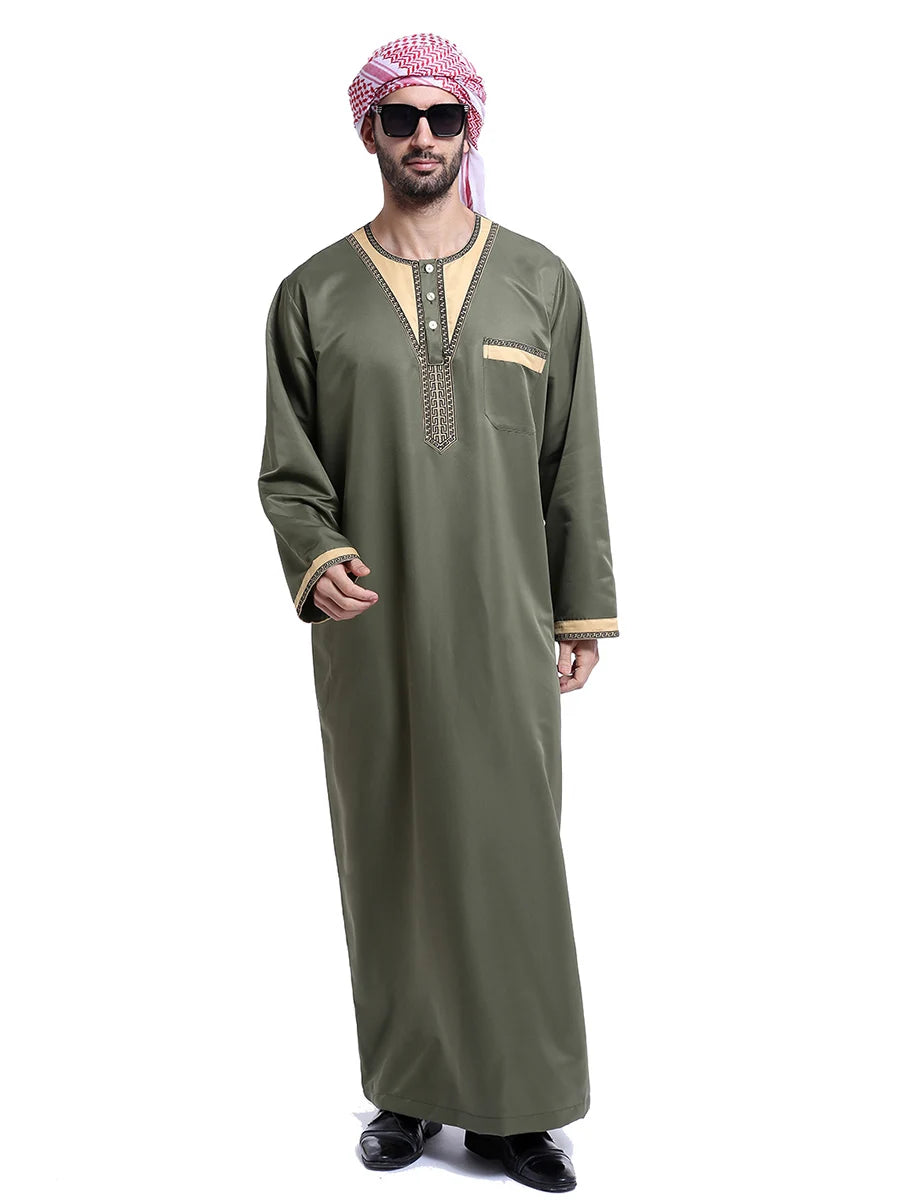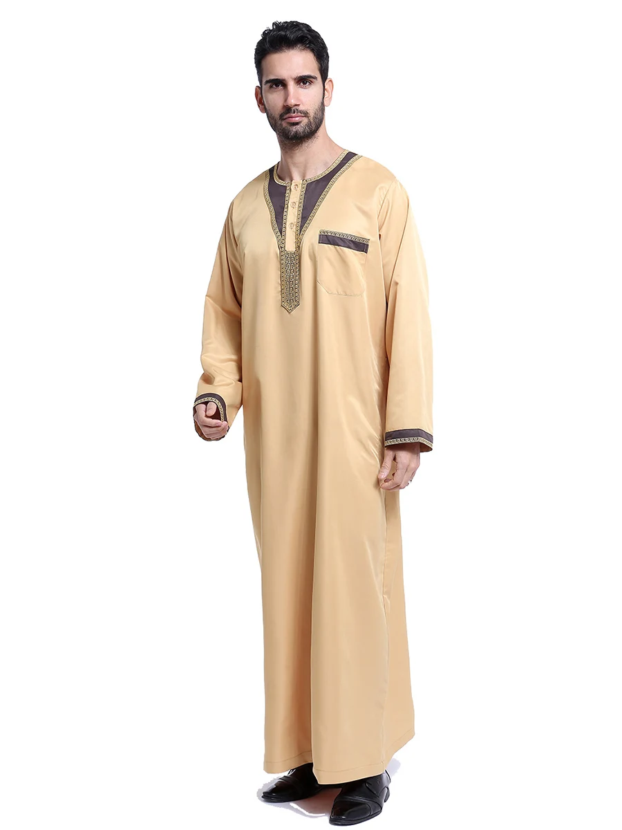 Muslim Men Long Sleeves Round Collar Patchwork Embroidery Button Robe – BUYO