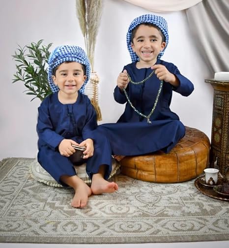 ROYAL ETHNIC Hand Stitched Traditional Emarati Kandora/Thobe/Dishdasha/Arab dress for Boys, Kids, infant (Navy Blue) (7 YEAR)