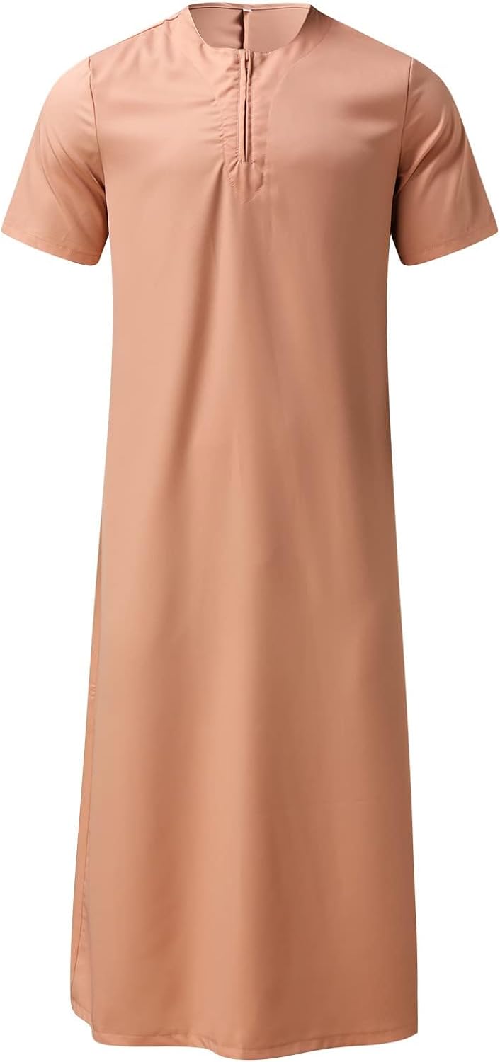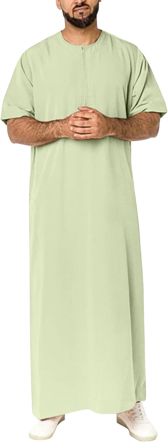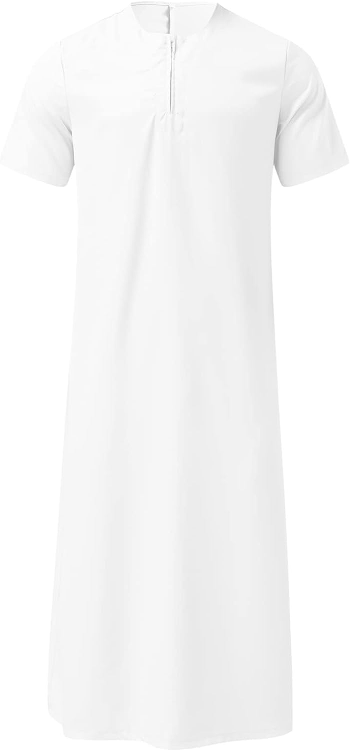 THE WHITE SHOP Men's Muslim Clothing Arab Ramadan Robe Crewneck Long Gown Islamic Thobe Solid Short Sleeve Henley Shirts…