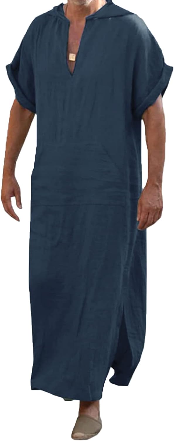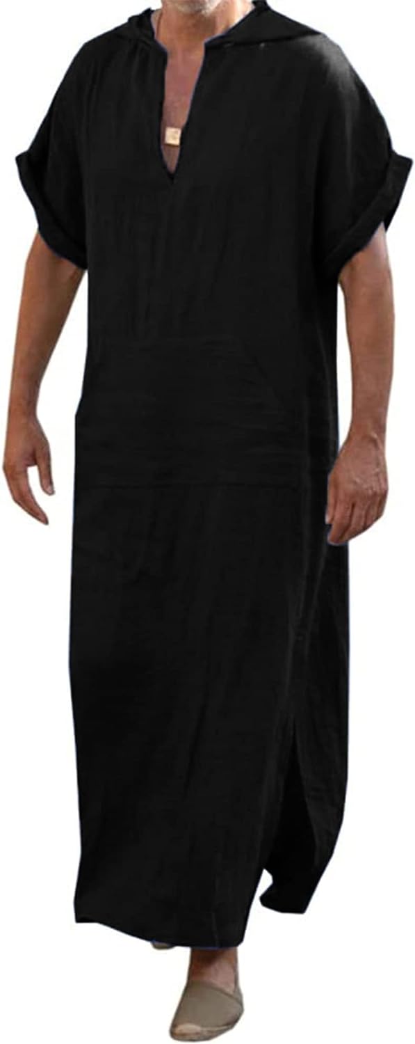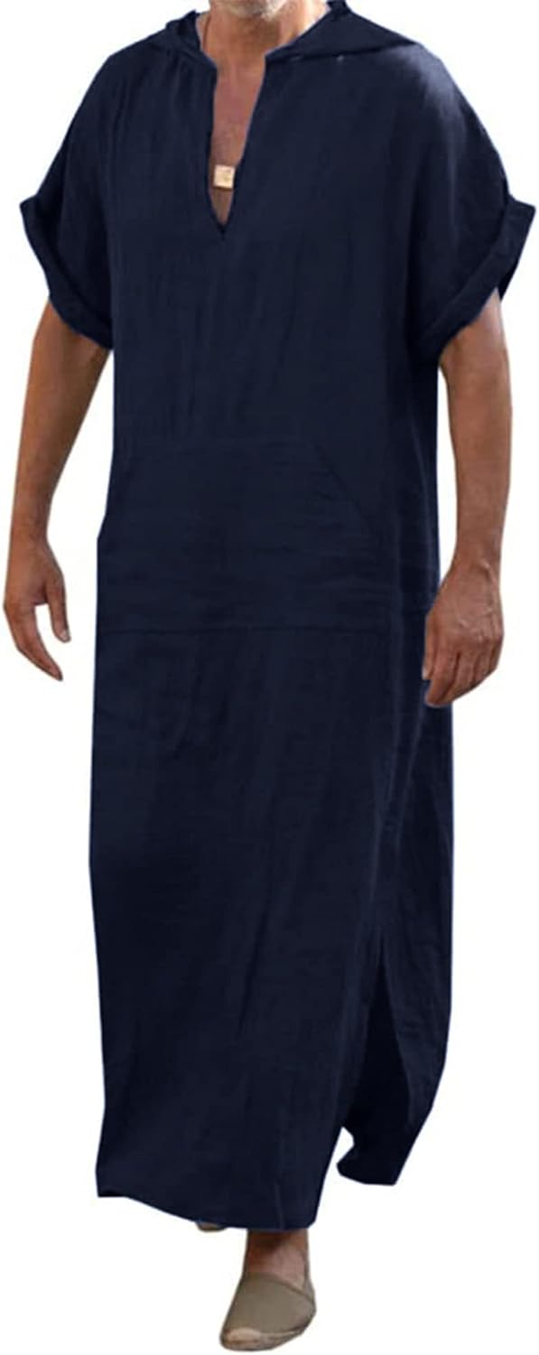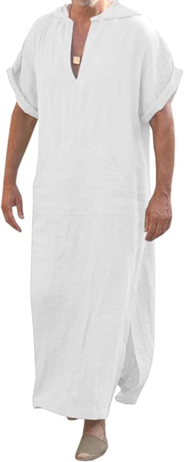 YAOHUOLE Men's Cotton Linen Arabic Robe V-Neck Short Sleeve Abaya Robe – BUYO