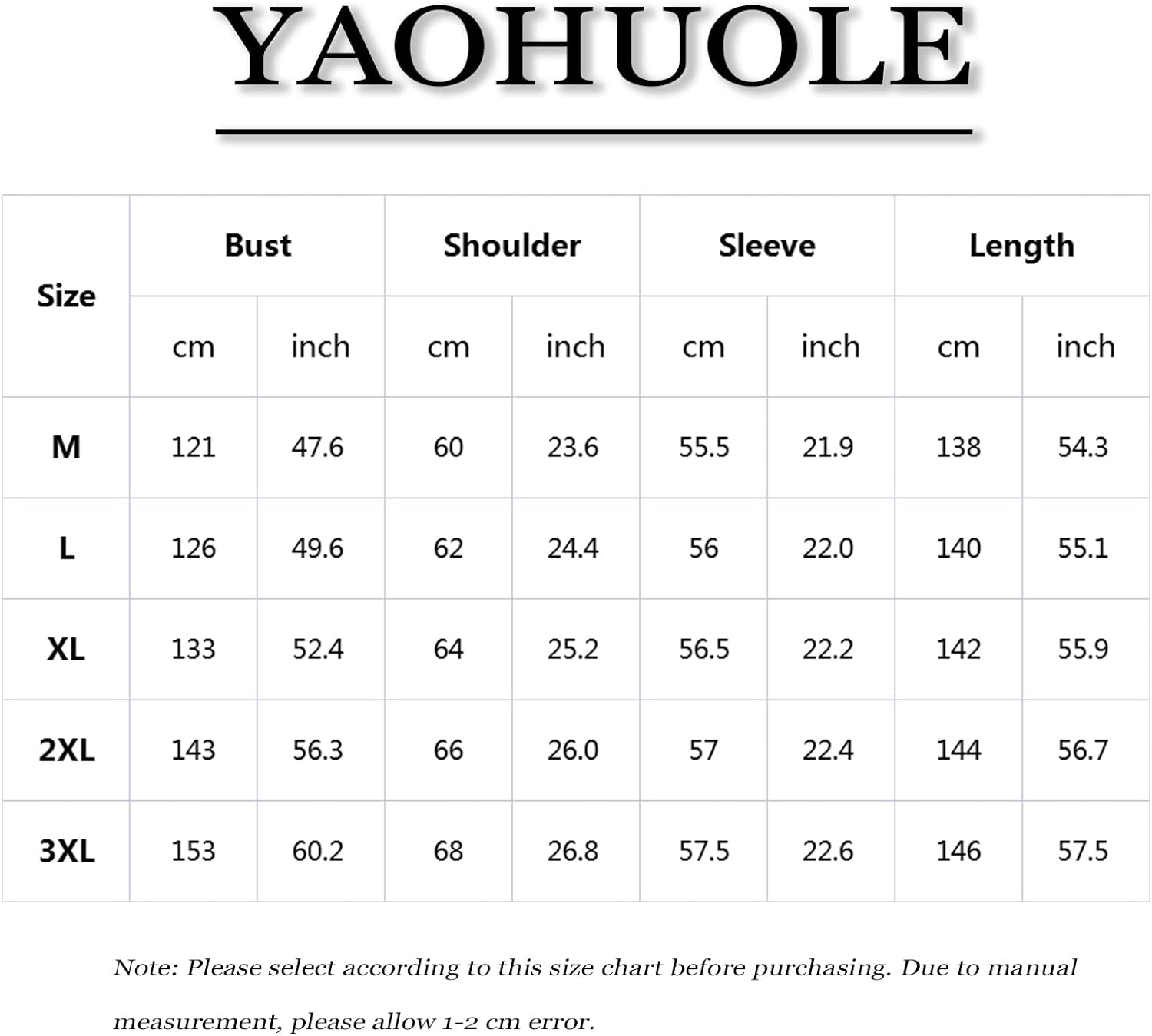 - Size: Size M-3XL, if you are not sure the size of the clothes, please carefully check the size chart before you purchase.