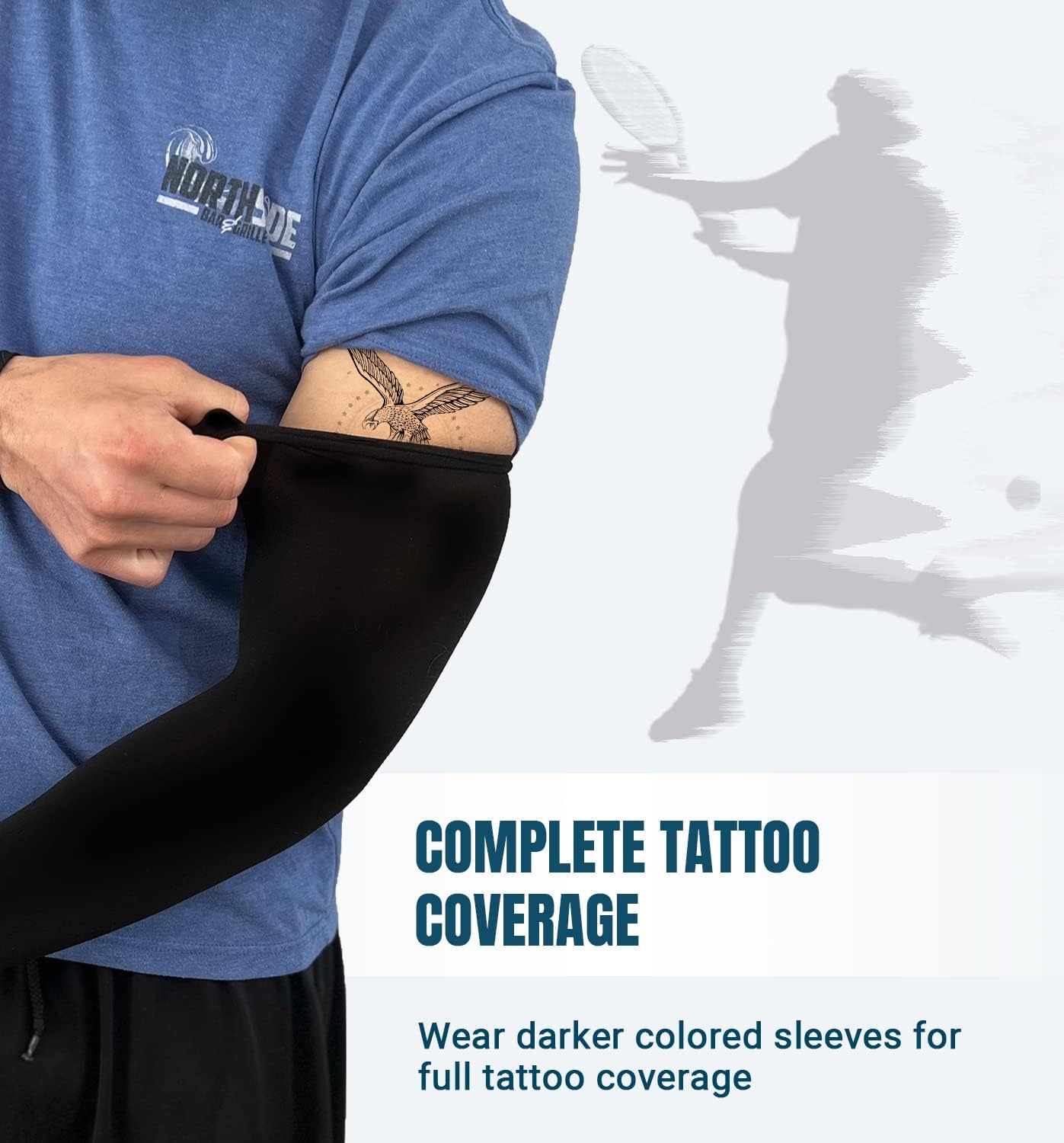 - Full Tattoo Coverage - Black color does work to full tattoo coverage. There is no any visible logo or brand outside this cooling arm sleeves. Wash machine/hand wash & hang to dry to keep sleeves in new-like condition. Comes with 2 pairs for any outdoor activities or work on construction and gardening.