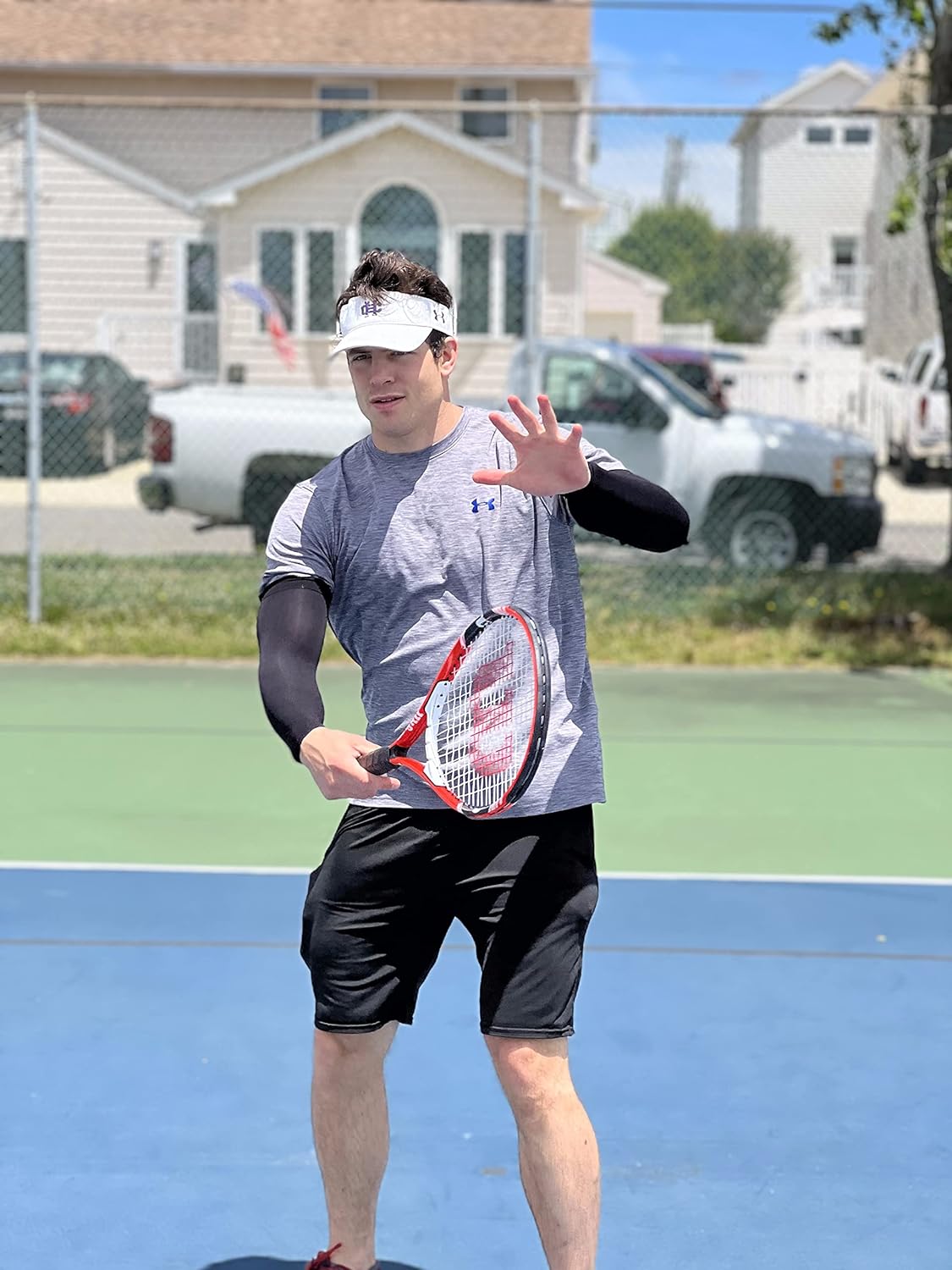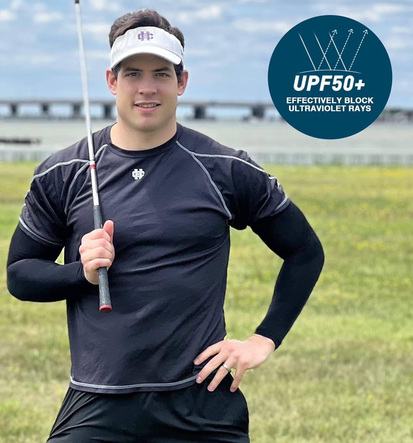- All-Round Sun Protection - UPF 50+ protective technology works great to keep the harmful sun rays off your skin when golfing, shooting, running, bike riding, etc. No need for greasy sunscreen or long sleeves shirts. These uv sun protection arm sleeves shield your arms from sunburn and skin damage during long days in sun.