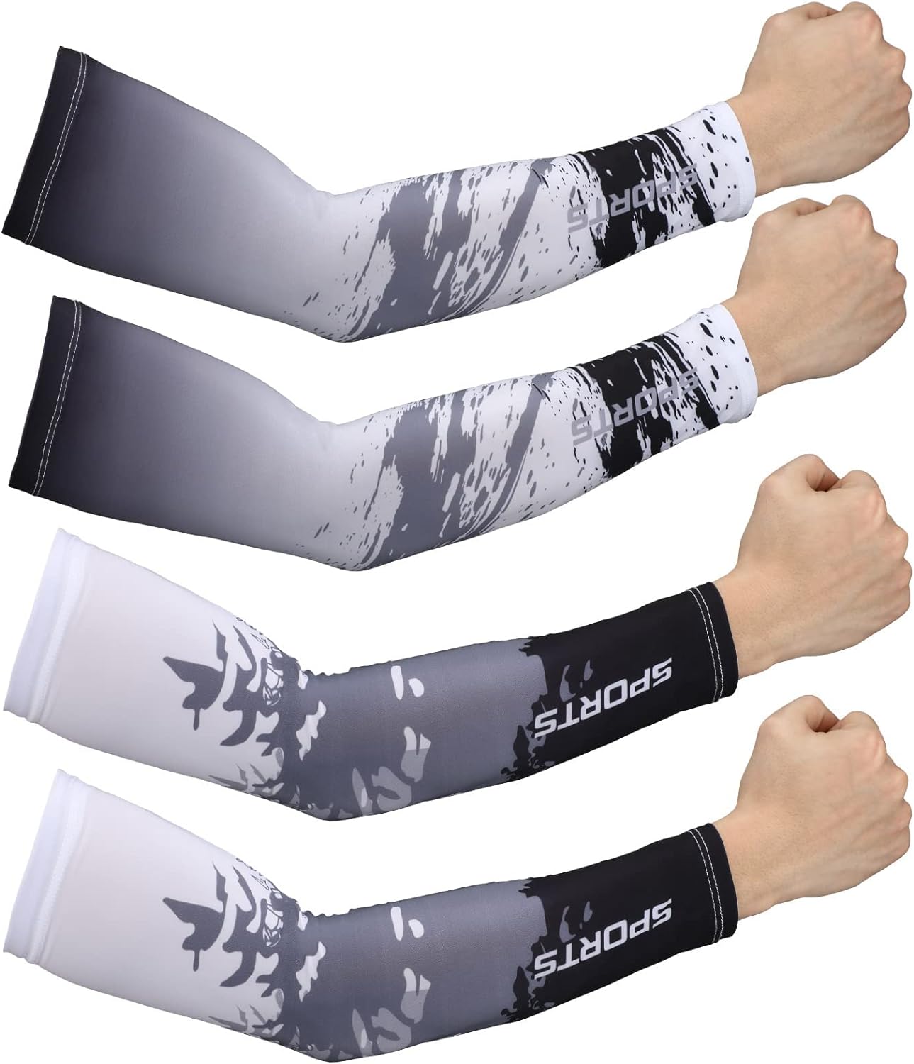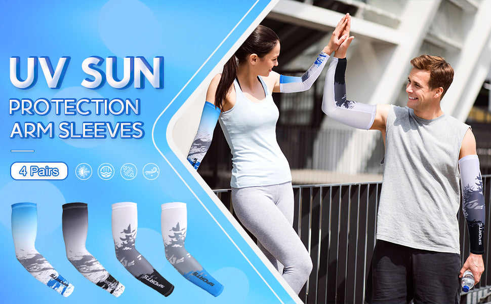 MAKINGTEC 4 Pairs UV Sun Protection Arm Sleeves, for Men Women, Anti Slip Arm Compression Sleeves, Ice Silk Cooling Sleeves Long Arm Cover, for Men Women, Outdoor Sport Running Football