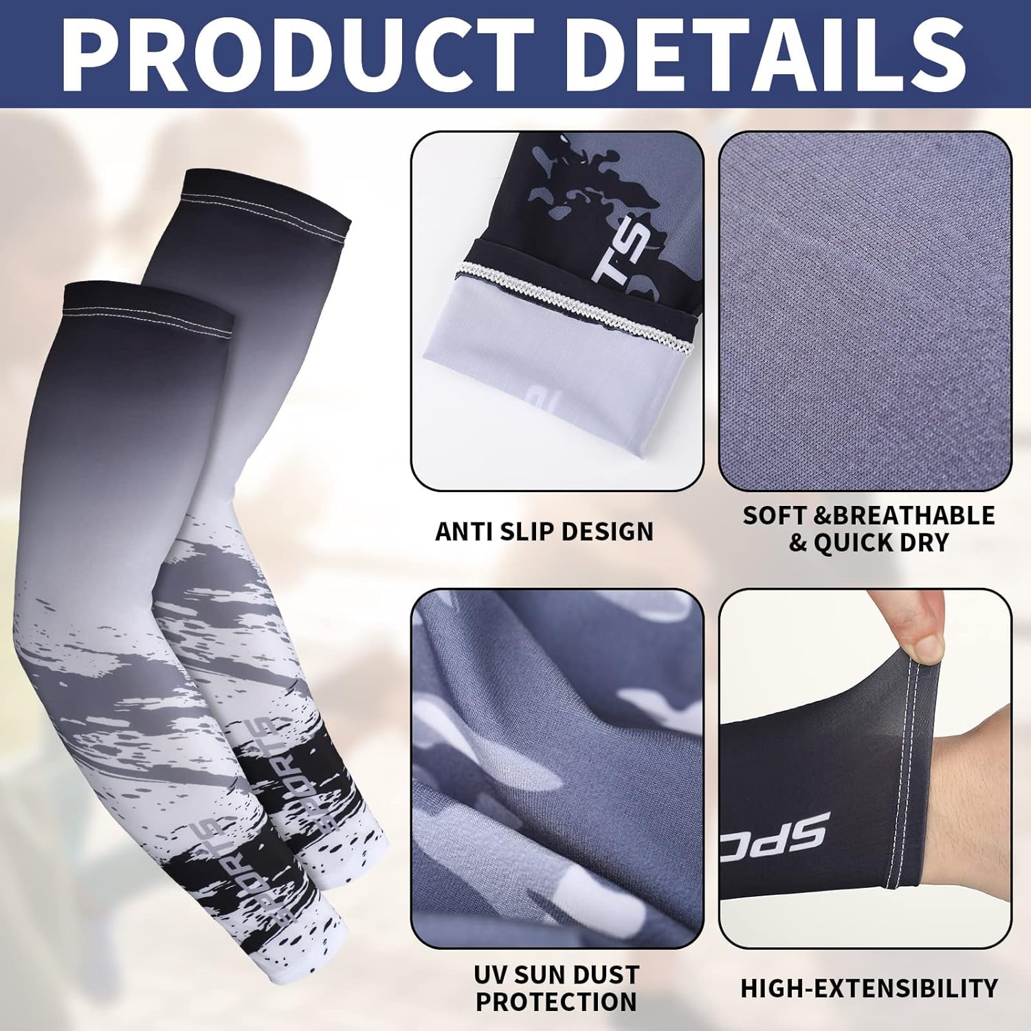 - đȘăAnti Slip and Thumbhole DesignăUV sun protection arm sleeves are designed in anti slip style, equipped with anti slip tape to fix them on your arms, not falling off easily, thus you can more enjoy outdoor activities and sports, the thumbhole design can cover your palm, to reduce sun burnt and scratch.