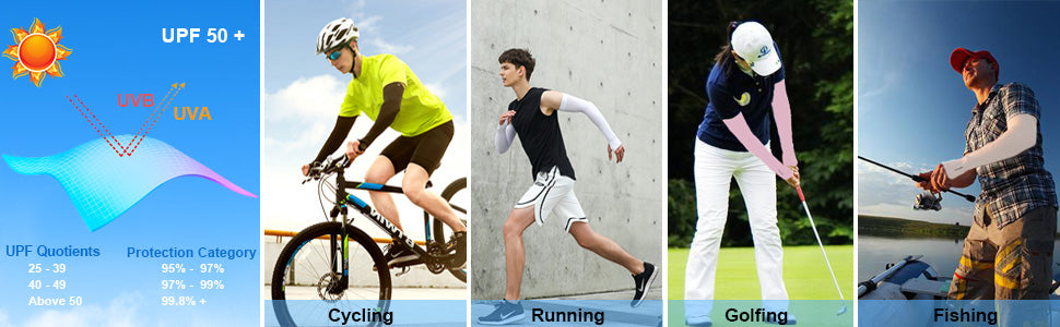 - 【UPF 50 PROTECTION】: The arm sleeve is made of premium soft fabrics, 70% Nylon and 30% Spandex. It can block out as high as 97% of harmful UVA and UVB rays to prevent sunburn, skin aging. No more Sunscreen. You are maximum UV protected all day long.
