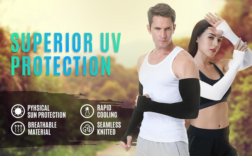 UV Protection Arm Sleeves Keep your Arm Cool and Protect You from the Scorching SunIf you are looking for a perfect sun protection arm sleeves that will protect you from sun,cool you down and will also be very comfy to wear. Cooling arm sleeve is your summerdays’ best choice to protect your arms from the sun’s harmful damage.Size: One size fit allPackage includes:Total 6 pieces of cooling sleeves.Multiple all-match pure colors can nearly match all of your clothes styles and colors,offering excellent wear experience, enough for daily usages, you can share with your friends and family as wellFeatures and Benefits:UPF 50+ protection, avoid harmful UV rays.Breathable material, be soft and breathable to cool arms.Absorb sweat greatly and be quick-drying.With high elasticity and not easy to slip off.Perfect for all outdoor activities with no worries.