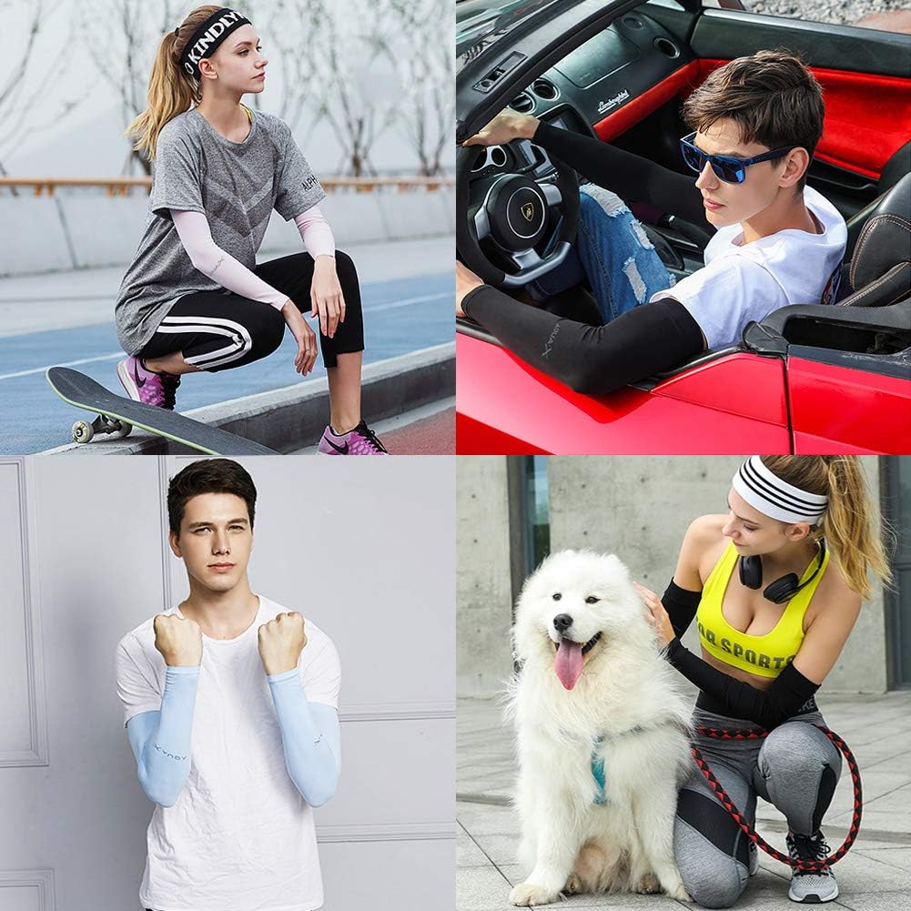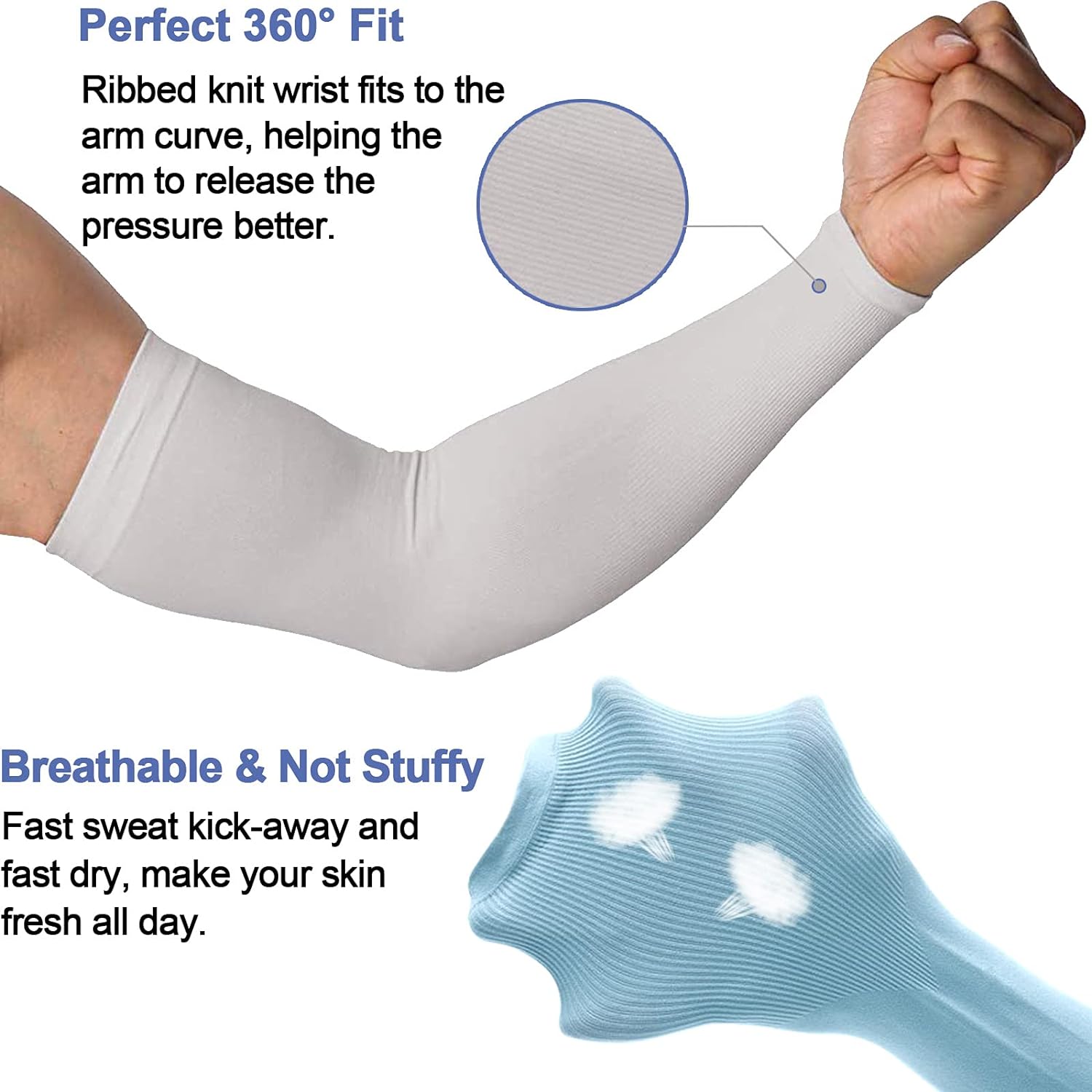 - SEAMLESS DESIGN & ELASTIC FABRIC: The UV arm sleeves can ensure a perfect 360° fit and won't slip away and leave imprints. V-type knitting process conforms to the natural curve of your arm, relieving pressure and making you feel comfortable when you wearing it. And it can also dry faster when you sweating, keeping your skin fresh throughout the day.