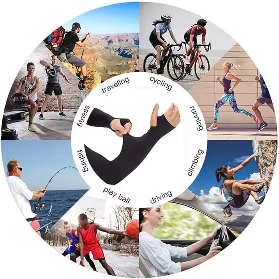 Key Features:- ✅ Say goodbye to reapplying sunscreen every 10 minutes! Our cooling arm sleeves are a pro at protection, with a UPF 50+ rating that blocks over 98% of harmful UVA & UVB rays. Feel cool and confident no matter what you're up to whether you're golfing, fishing, playing basketball, cycling, hiking, driving or even gardening. Finally, uv sleeves for men and women that beat the heat!✅ The more you sweat, the cooler you'll feel - it's like magic! These arm sleeves are made with a sweat-wicking fabric that'll keep you cool even on the hottest days. As you sweat, the fabric works its magic, keeping you feeling fresh and fabulous even in extreme heat. Did we mention they make ideal shooter sleeve and football arm sleeves. ✅ Summer, meet your new best friend: our uv arm sleeves for men and women. Calm, and collected no matter how hot it gets outside. This lightweight, breathable material acts like an air vent, circulating your body heat away and to keep you feeling cool and comfortable, so you can enjoy all your outdoor adventures without breaking a sweat. The perfect arm shields for men and women against hot, sunny days.✅ You'll have cooling sleeves to cover arms for men and women always handy. Leave a pair in your truck, gym bag, or at work or share with your team.✅ Ditch the long sleeve shirts and become a tattoo top gun! These protection arm sleeves are made to cover up your ink and keep you looking professional at all times.✅ These uv sleeves are the perfect fit for everyone! Made with a 2-way stretch fabric.
