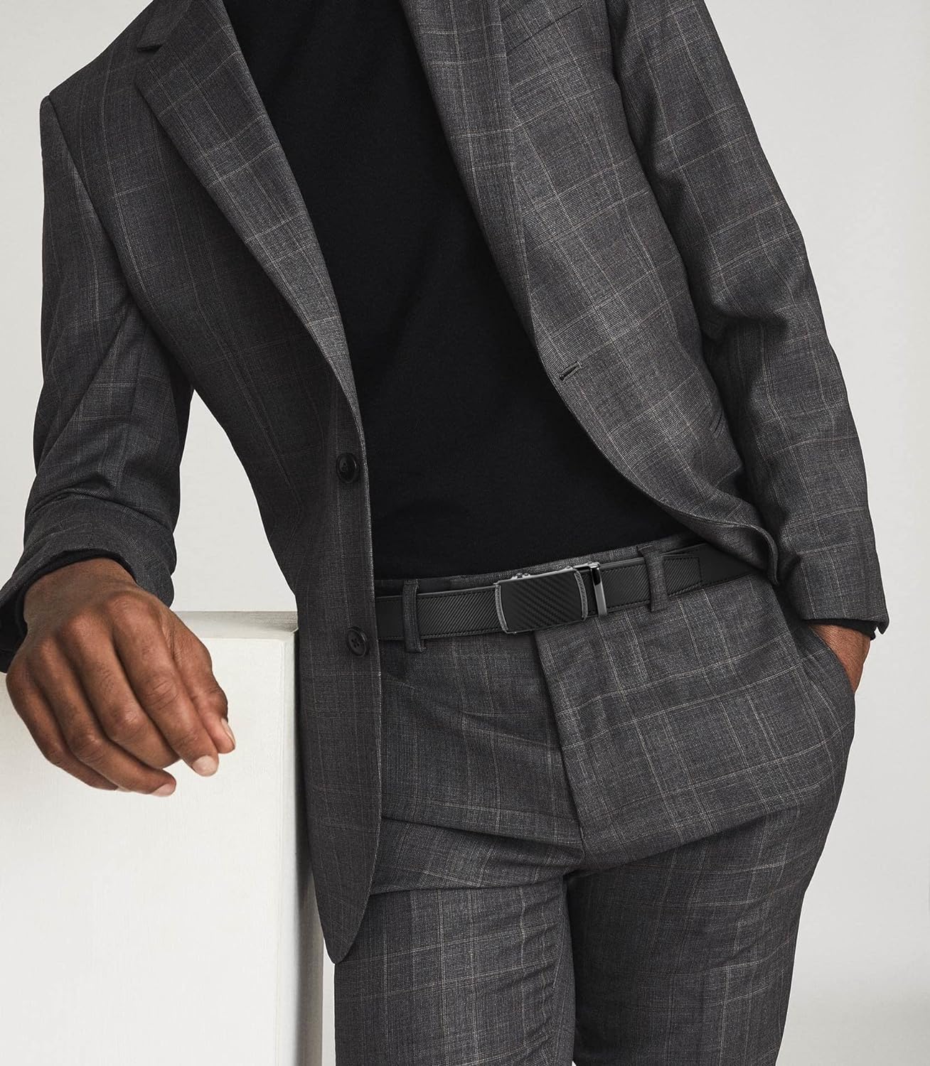• EASY TO USE - Slide the black belt into the sliding buckle, pull the black leather belt through, then click-it buckle simply automatically locks. To release the casual belt, gently push the lever on the side of the automatic buckle, then the lock snaps shut. Simple, smooth, and sleek!