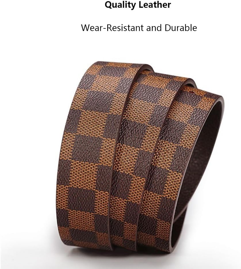 • 【Maximum Durability】Mens belts for jeans with PU leather, soft but not flimsy;Plaid pattern presenting the high texture refined look;Personality buckle design featured high-quality hardware,is lighter and scratch-resistant which made to last.