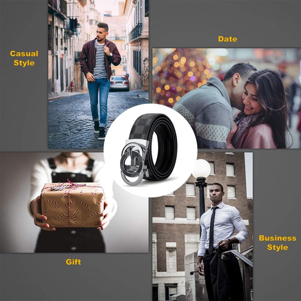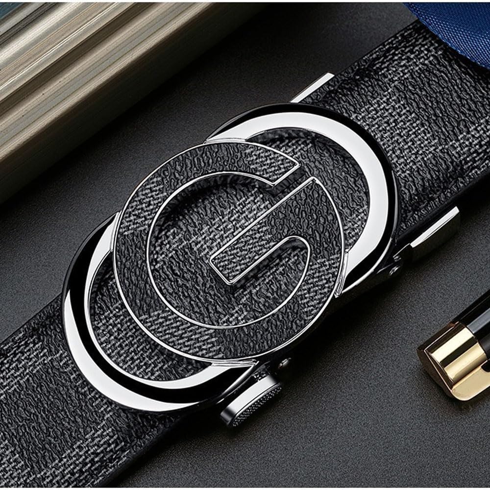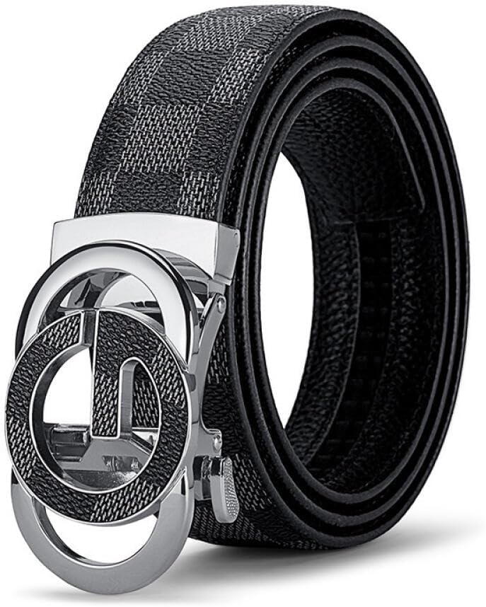 Goodern Mens Belt,Ratchet Belt PU Leather Belt Classic Work Business Dress Belt Fashion Mens Dress Belt with Automatic Buckle,Men's Casual Jeans Belts Pants Belts with Easier Adjustable Buckle