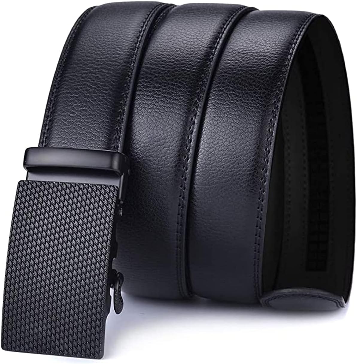 KASTWAVE Men's Leather Ratchet Dress Belts with Automatic Buckle Leather Belt Fashion Belt Ratchet Belt Soft, Comfortable and Durable Quality Leather - Adjustable Trim to Fit- Black