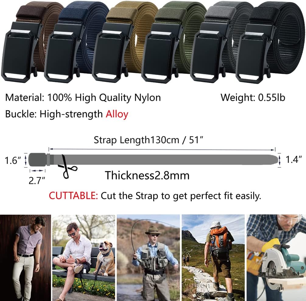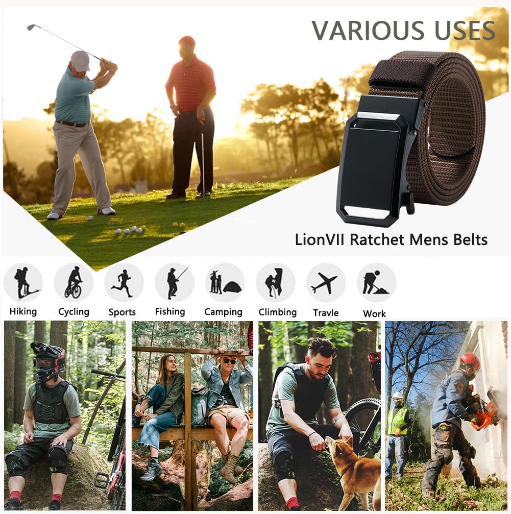 LionVII Ratchet Belts for Men - Mens Fashion Belt Nylon Fabric 1 3/8" for Casual Jeans - Adjustable Trim to Fit 27-46" Waist