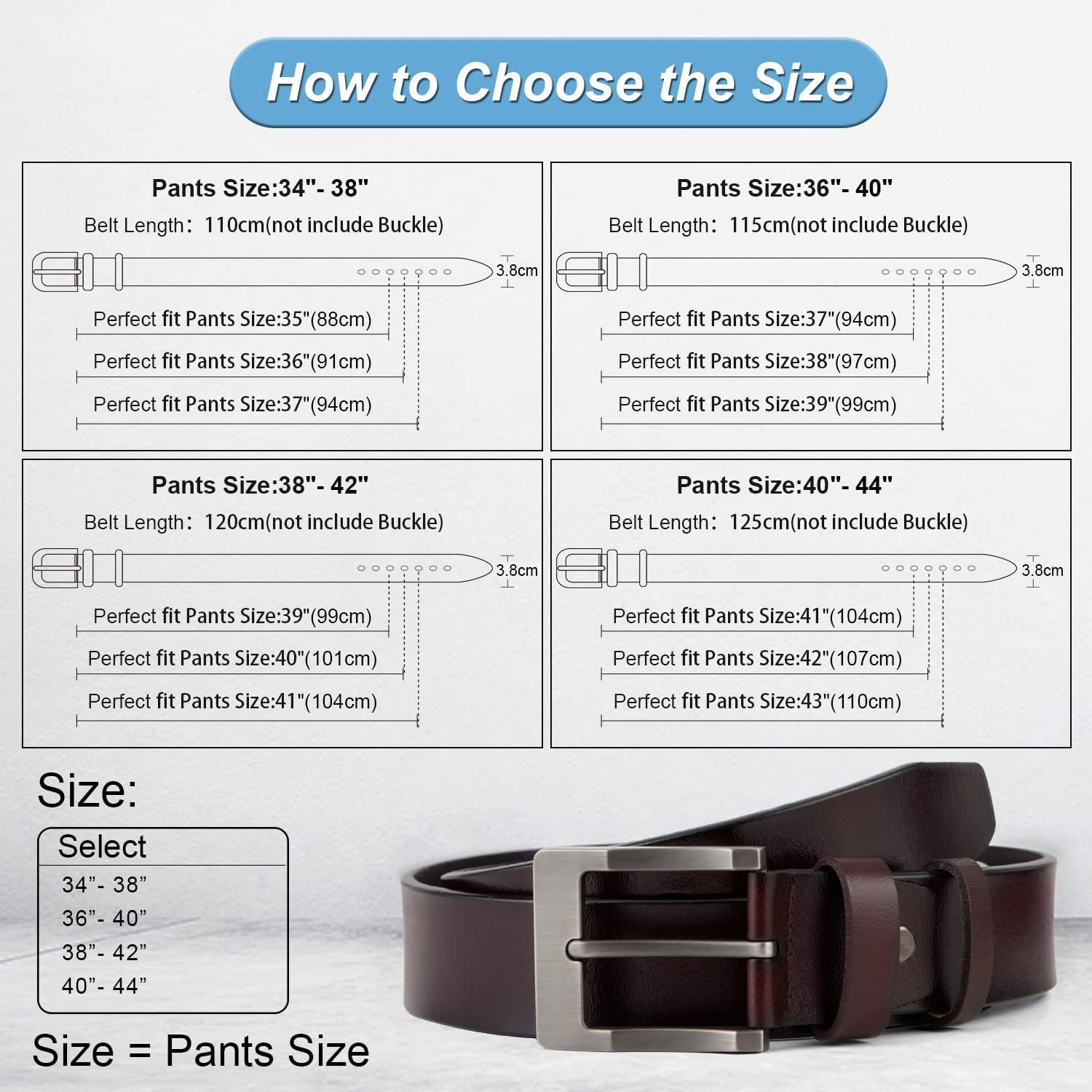 Men's Belt,Soft Genuine Leather Dress Belts 38mm,for Casual Jeans and Casual Belts