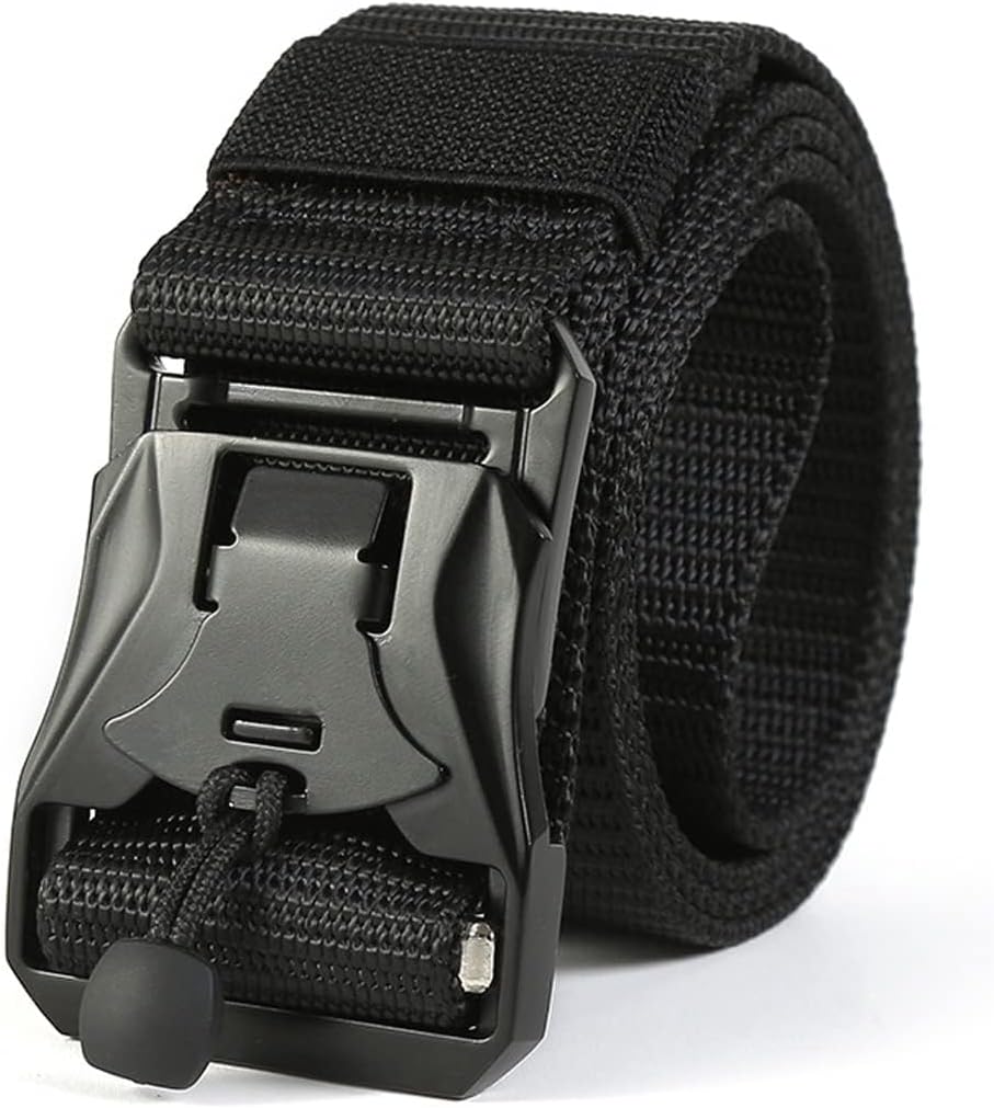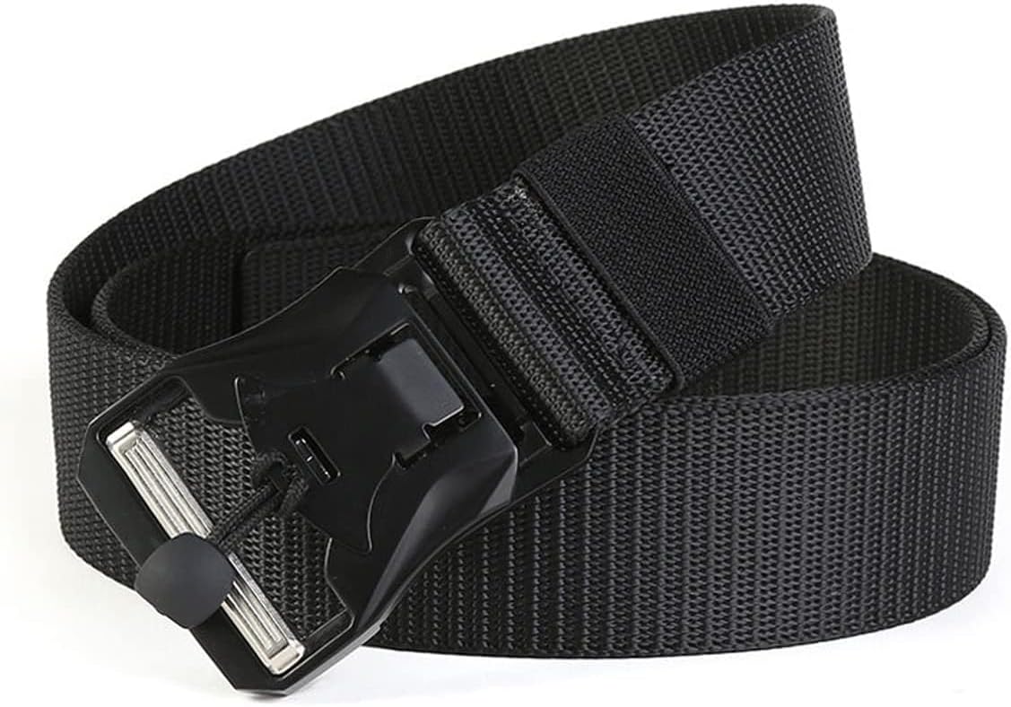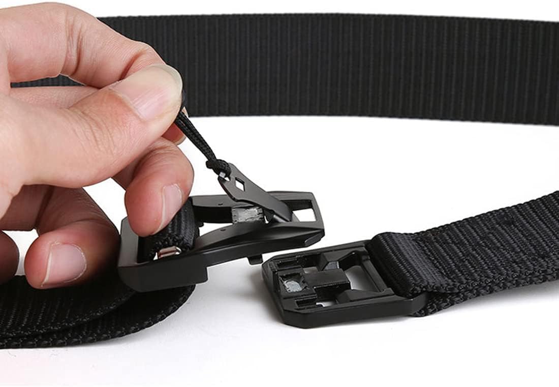 - 【 Release for one second】 This casual belt comes with an anti pull metal buckle and a small crossbar that allows you to lock or unlock it in one second. Witness and release the belt in one second.