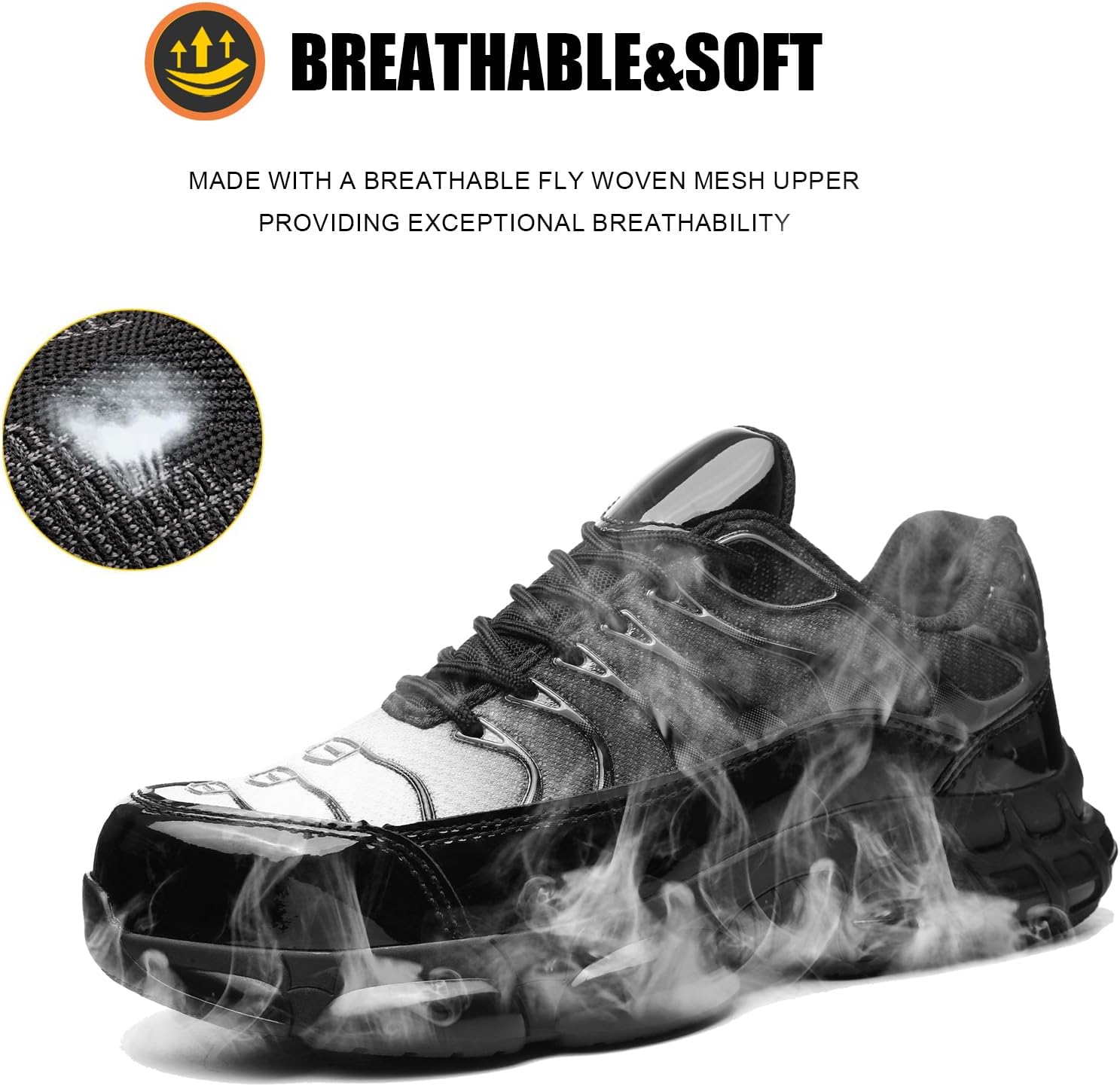 • 【🌬️ Breathable Upper: Enhanced Airflow】 Experience ultimate foot comfort with the breathable fly woven mesh upper of these men's work shoes. This material ensures exceptional breathability, keeping your feet cool and comfortable throughout the day. The mesh upper is designed for workers who need a shoe that can handle long hours while maintaining air circulation.