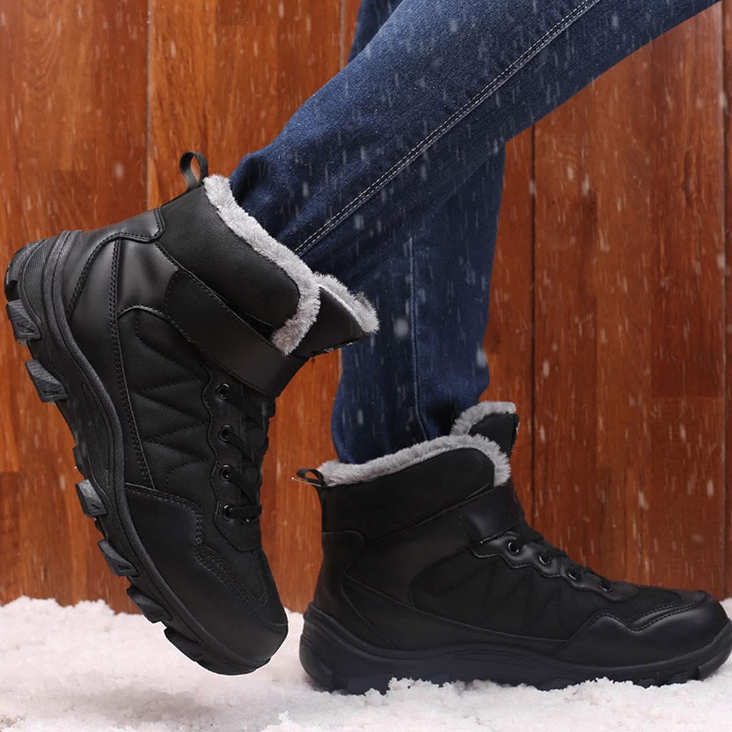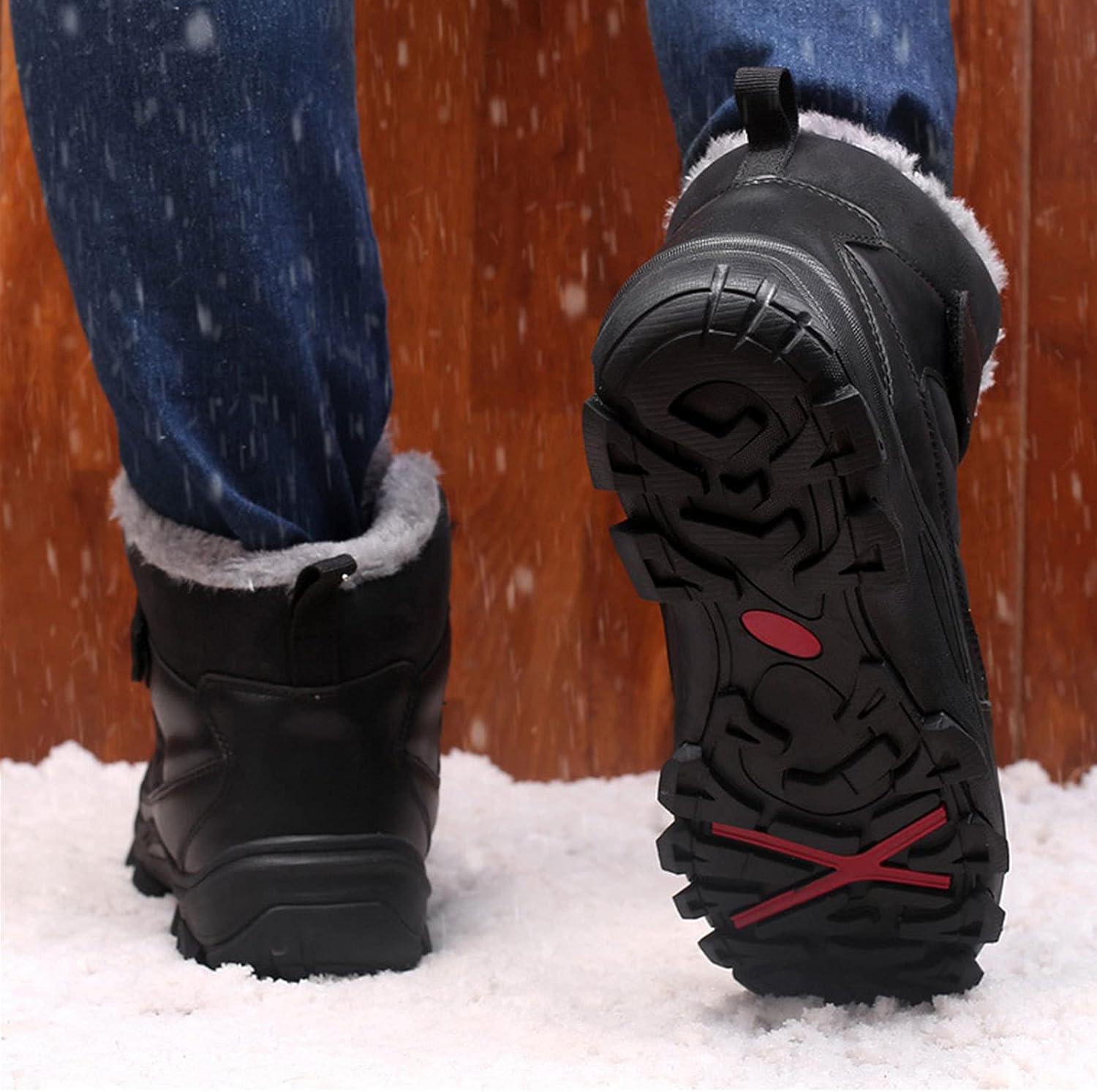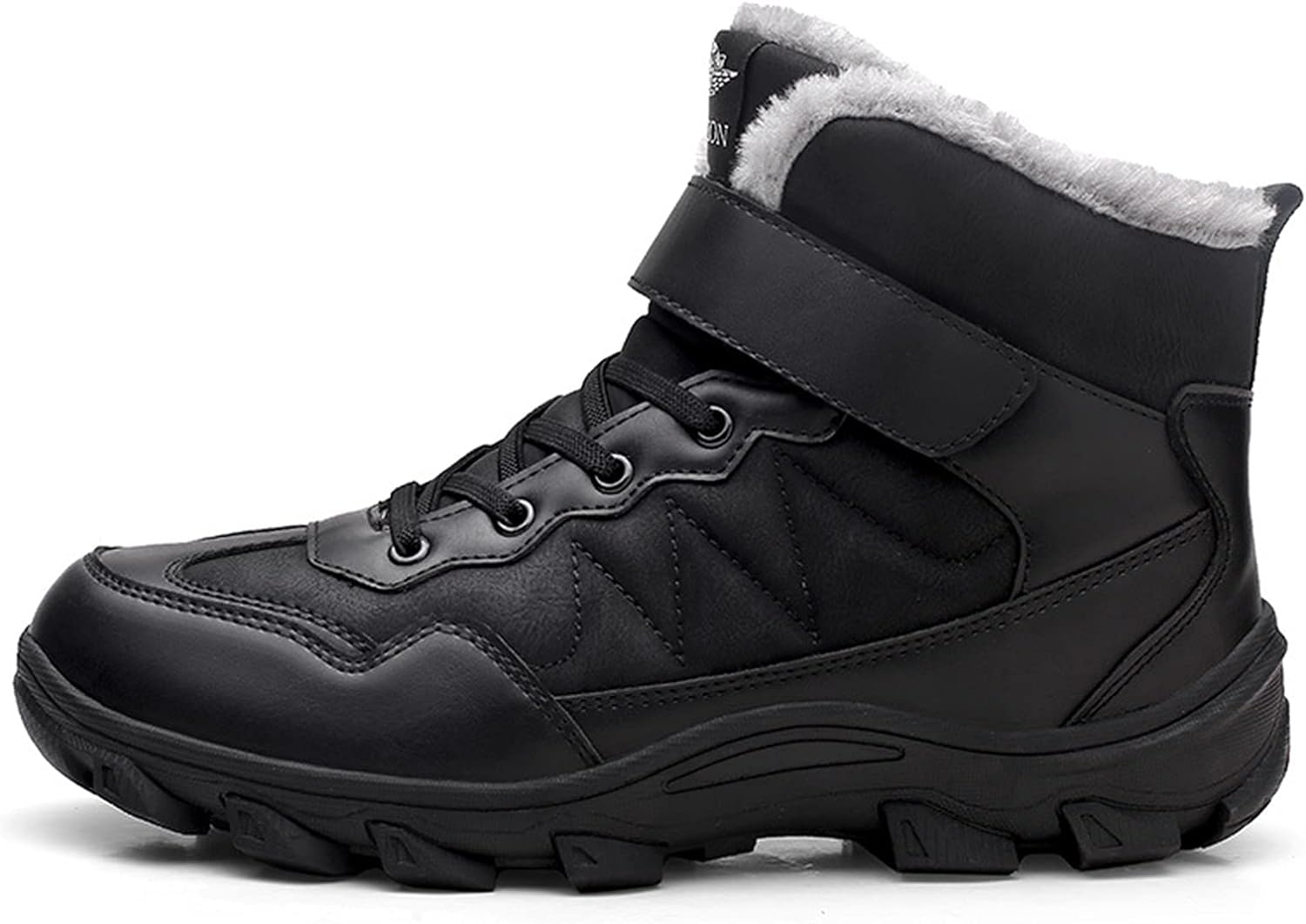 Mens Snow Boots,Winter Warm Ankle Boots,Fully Fur Lined Anti-Slip Boots Leather Waterproof Work Hiking Boots,Black-41