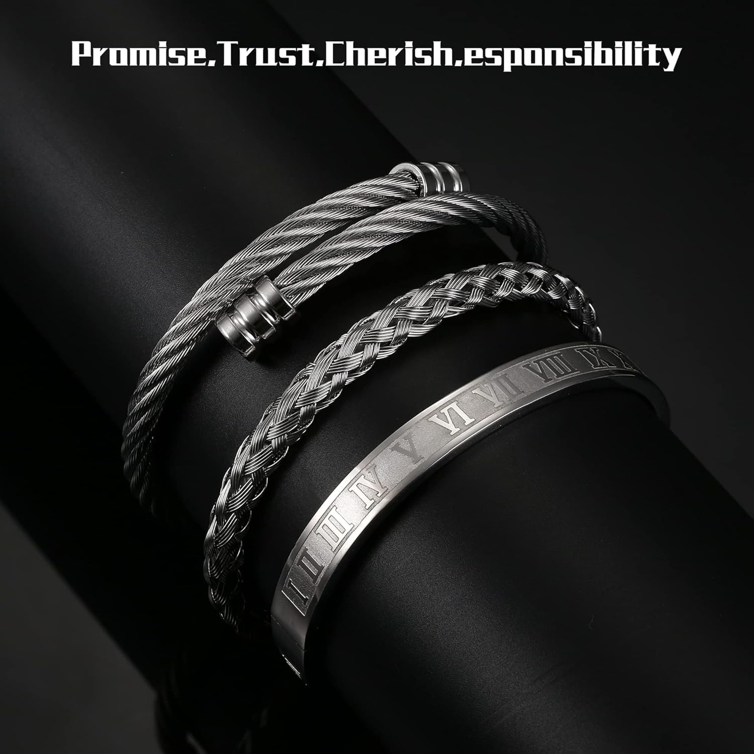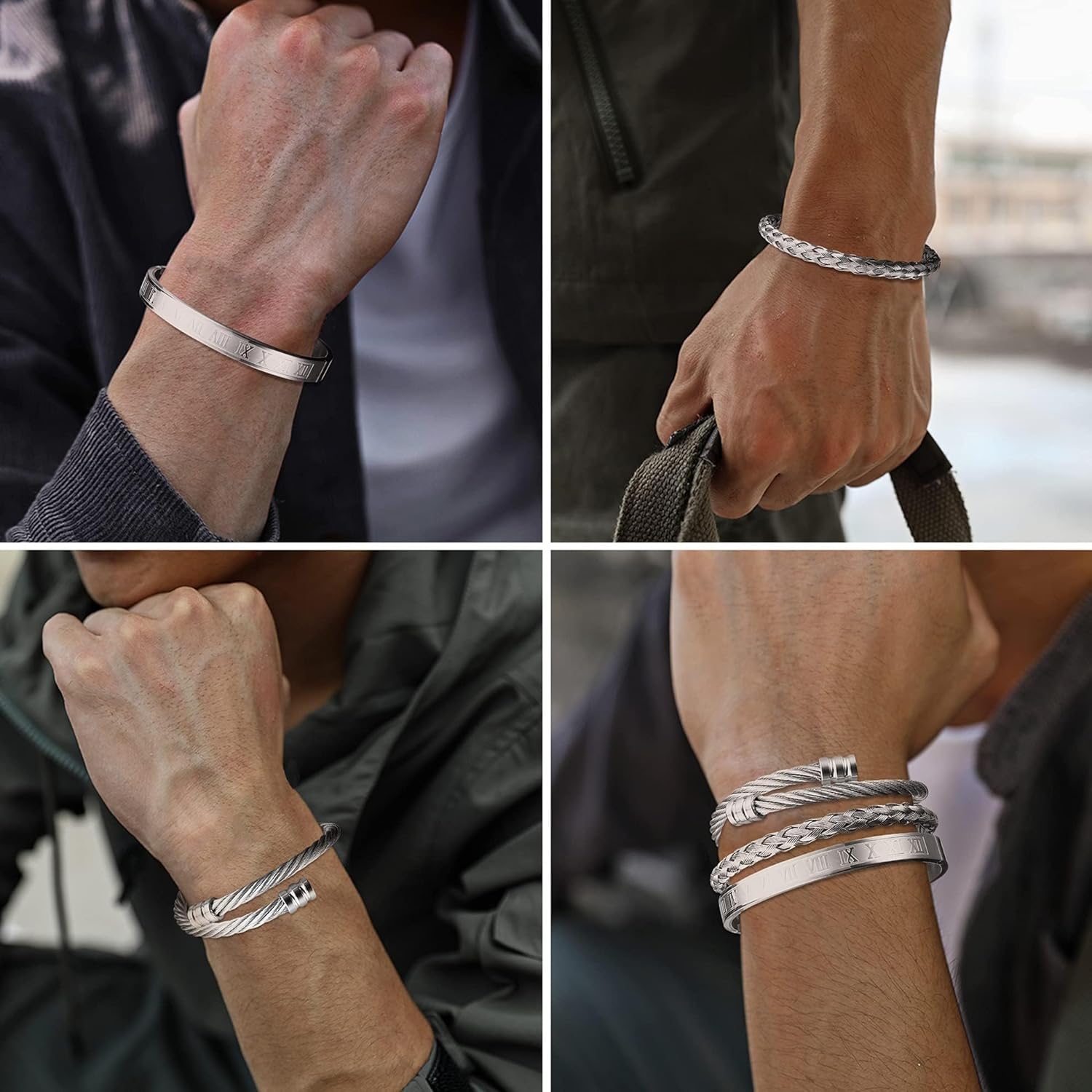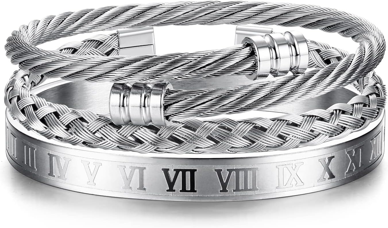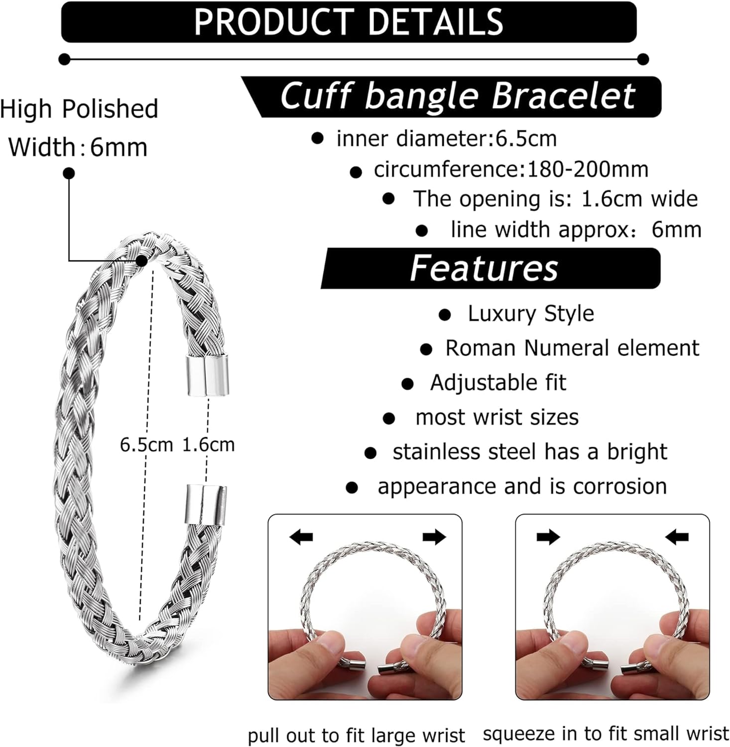 - 【Luxury Bangle Bracelets for Men】you will receive 3 pieces of different styles of stainless steel Bracelet for men, including roman numeral bangle bracelet, adjustable cuff bracelet, minimalist design,classic men's bracelet Give a modern edge to a casual t-shirt or formal outfit, make you more elegant, can be worn alone or stacked with other bracelets for a cool fashion statement.