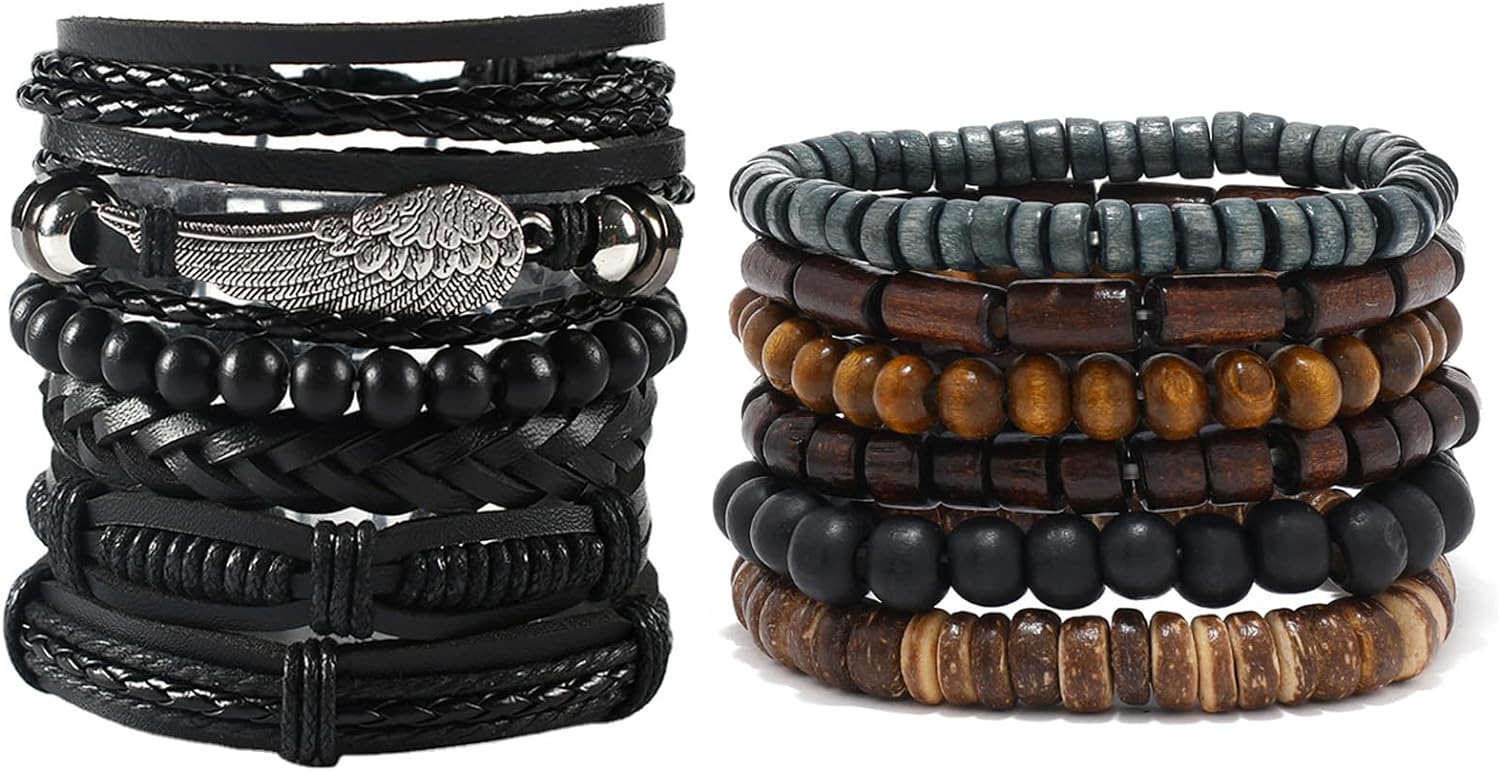 - GOOD MATERIAL: Braided Leather Bracelets Made of Leather, Wood Bead, Classic and Durable, Not Easy to Break, Comfortable to Wear.