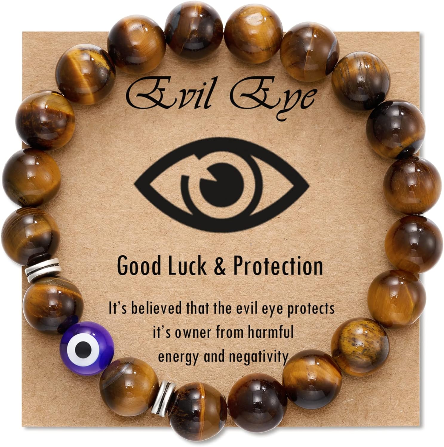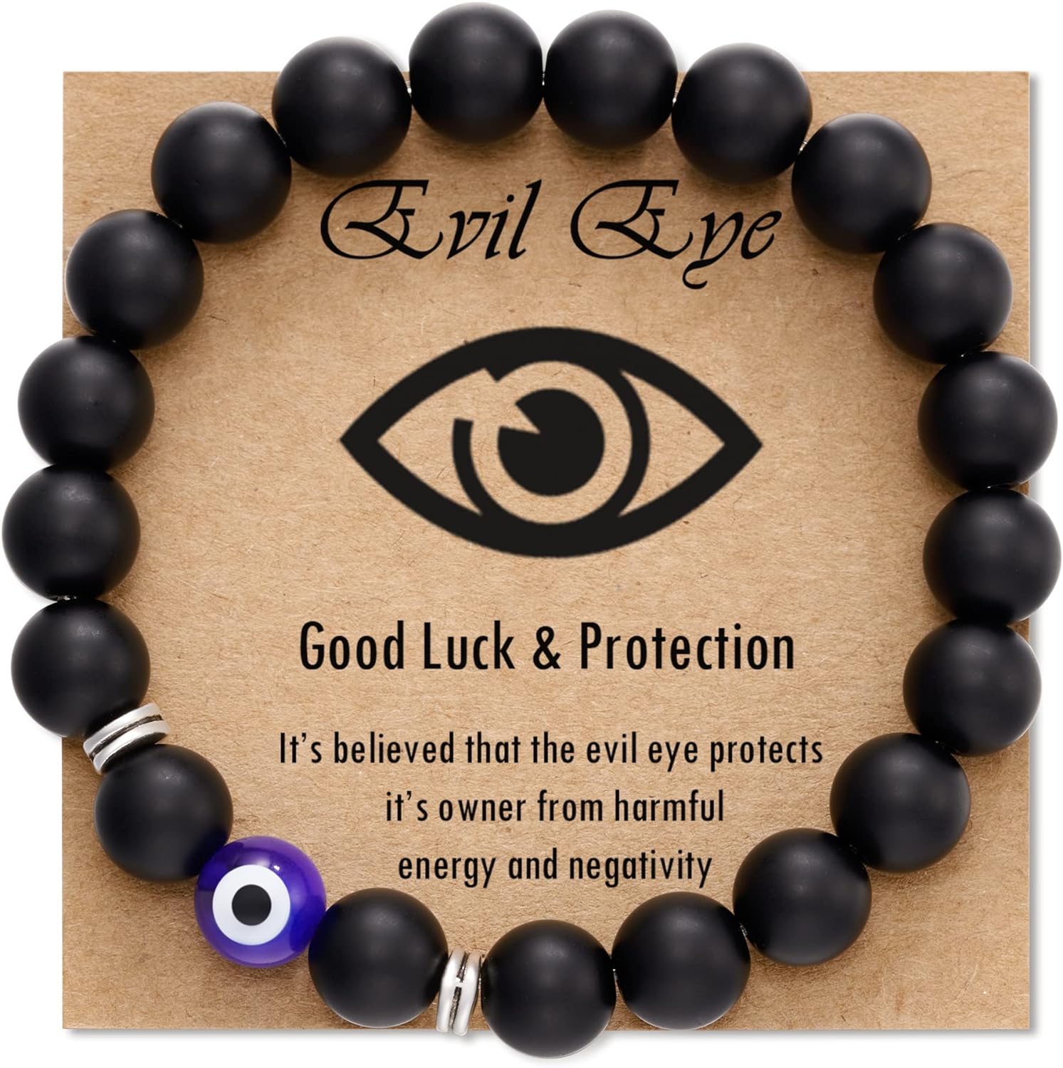 - Meaningful gift for men£ºThis lucky bracelet comes with a beautifully designed wish card and dainty present bag. The cool bracelet is a good gift for boyfriend,father,son,best friend or yourself on Christmas, Birthday,Valentine's Day.Believe evil eye bracelet can bring good luck, health, success and wealth for you and your family members.